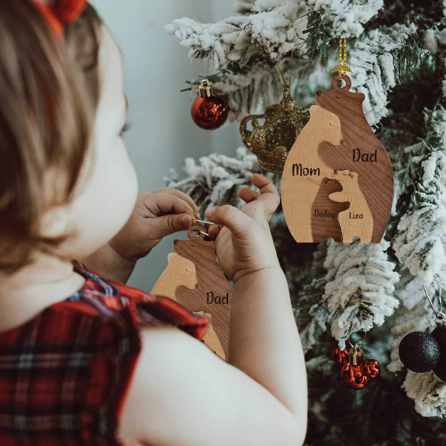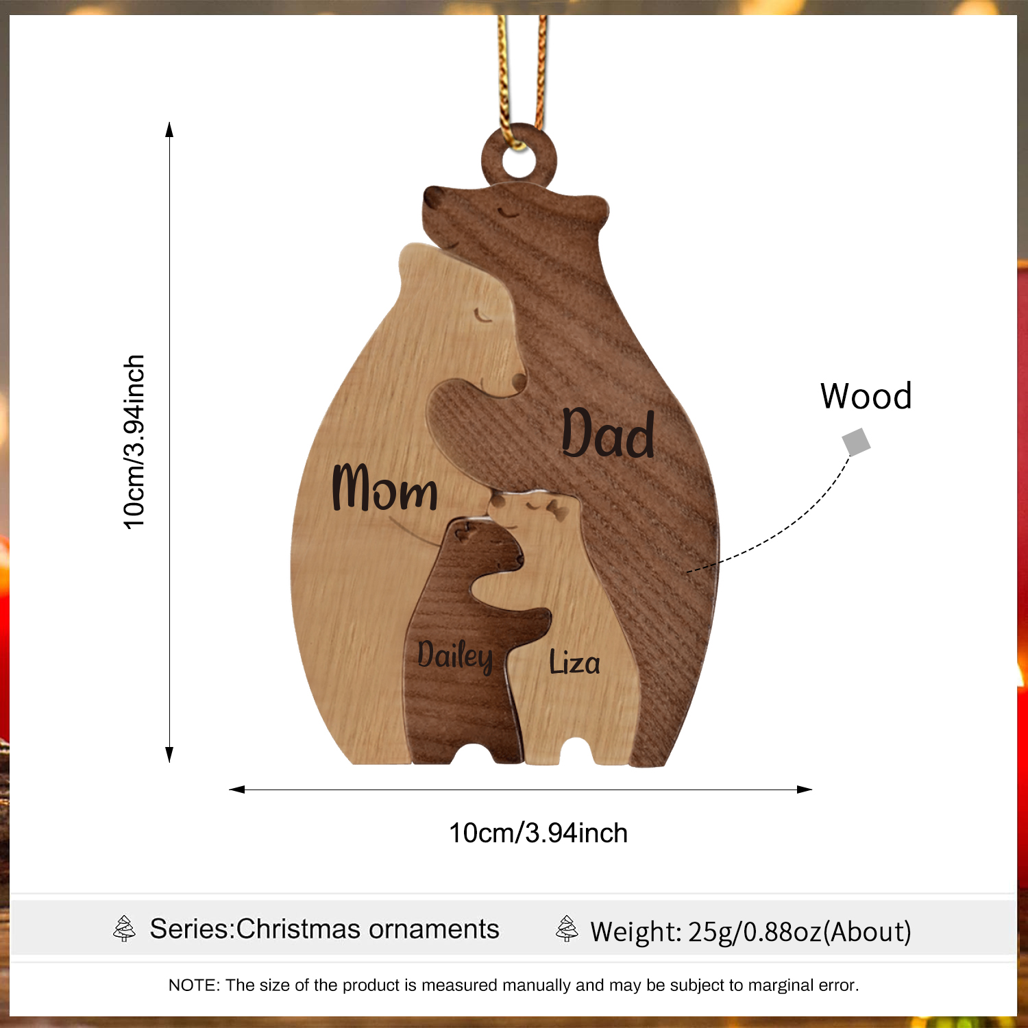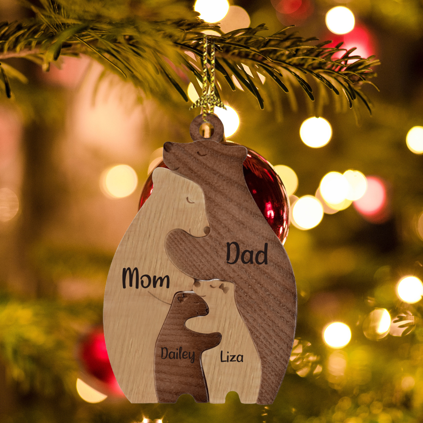 4 Names-Personalized Family Wooden Puzzle Ornament-Custom 4 Names Bear Hug Ornament Gifts For Family-Special Home Decoration