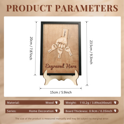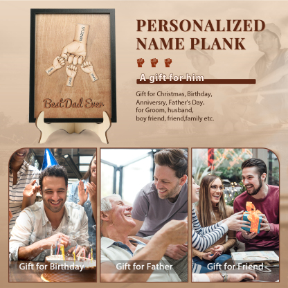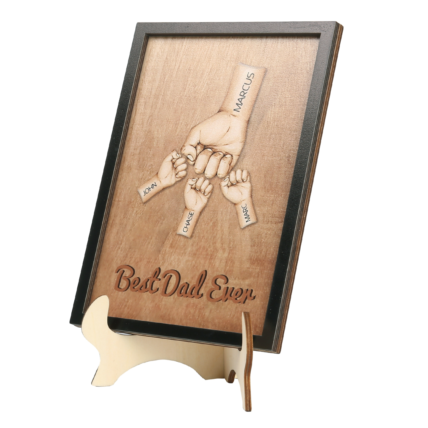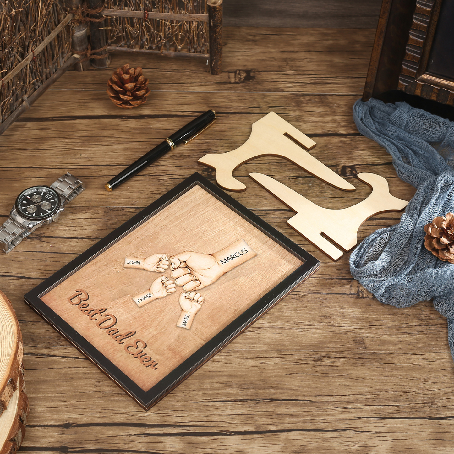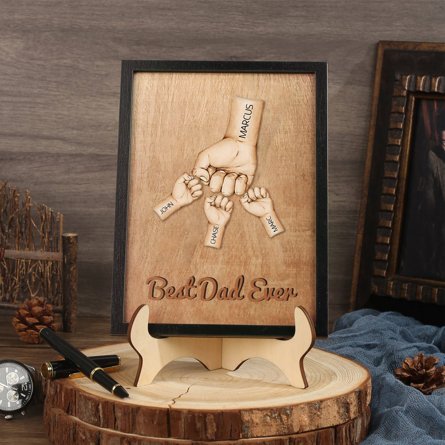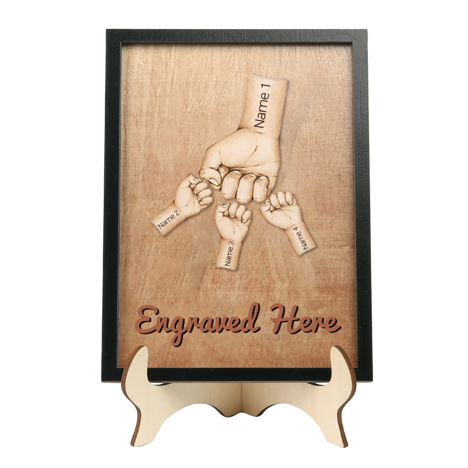 4 Names-Personalized Fist Bump Frame Wooden Ornament Engage Text Home Decoration for Father/Grandpa
