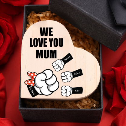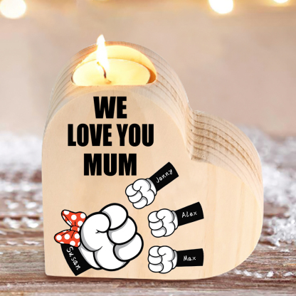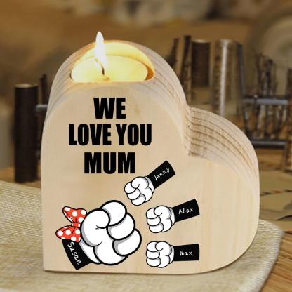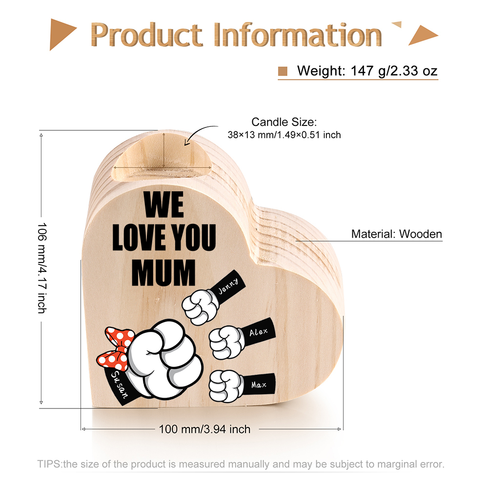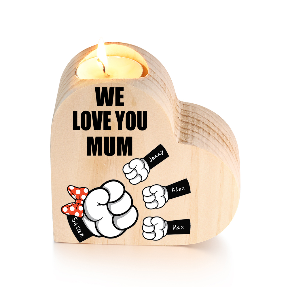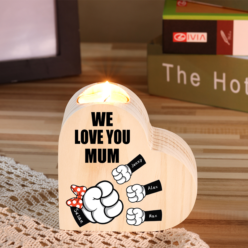 4 Names-Personalized Fist Bump Heart-Shape Candlestick Custom Text Mother's Day Gift Wooden Custom Candle Holder For Mum