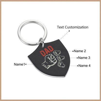 4 Names - Personalized Fist Bump Keychain Engraved Kids Names and text Keychain Gifts for Dad/Grandpa