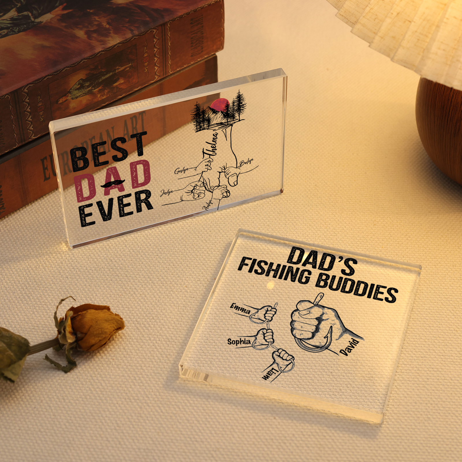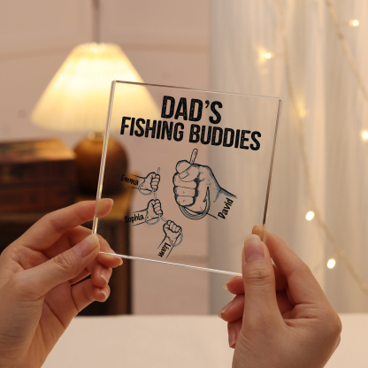 4 Names - Personalized Fishhook Fist Bump Pattern Family Acrylic Keepsake Customized Name Acrylic Home Decor Gift for Dad