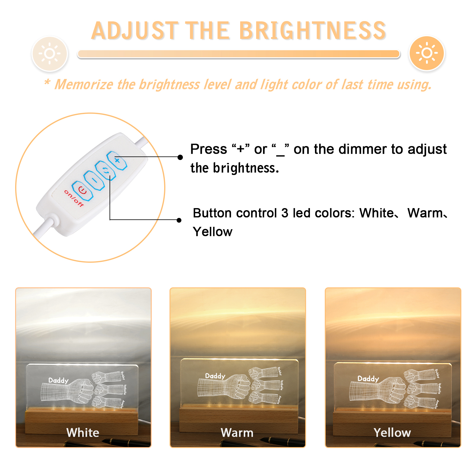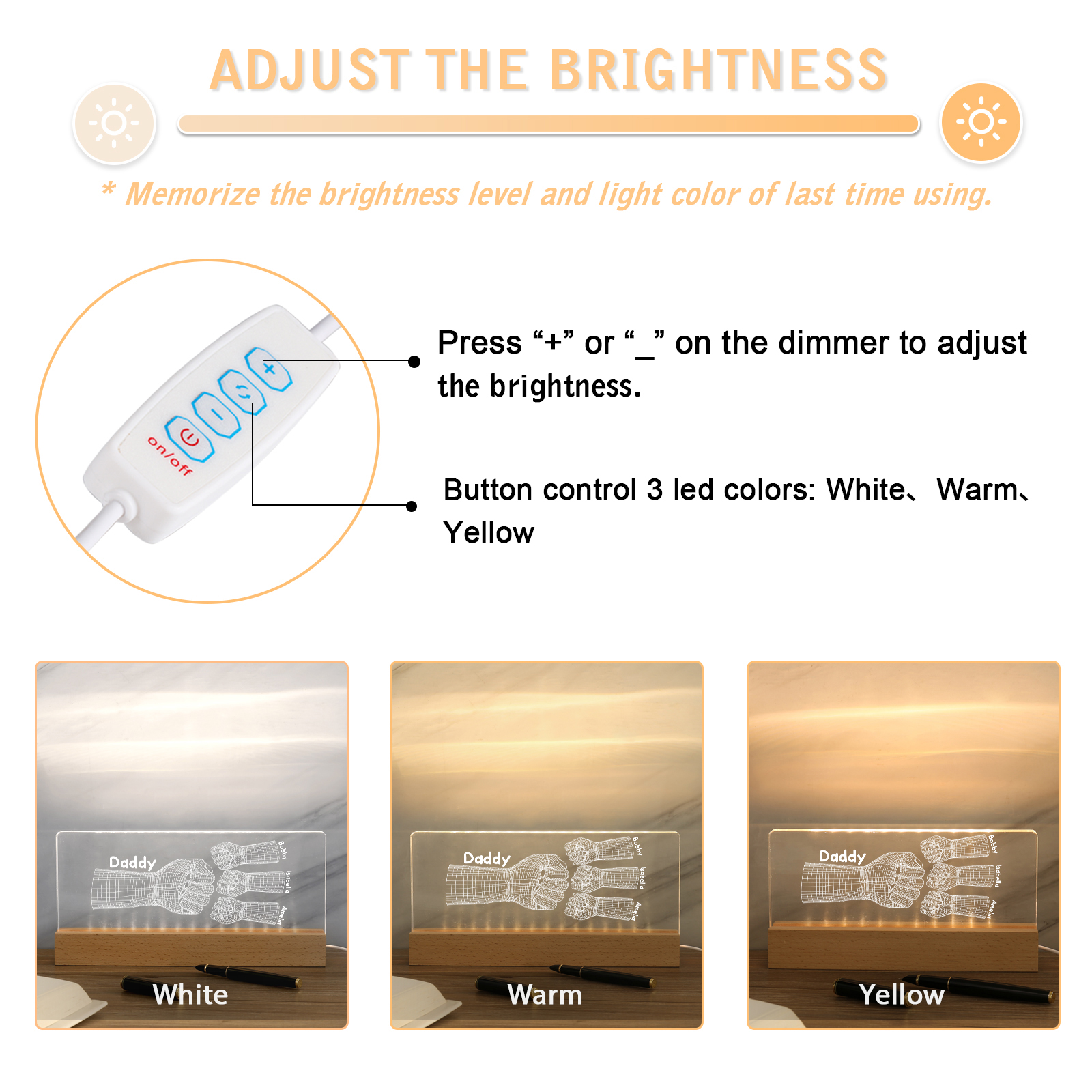 💡Customize a 3D Fist Bump Pattern Table Lamp with Dad's Name! 🌟 Give your father a unique gift that lights up his world. ❤️Personalized with his name, this sleek table lamp featuring an impressive 3D fist bump design will add a touch of modern flair to his space. Illuminate his days with personalized warmth and style. Order now to brighten up his day! 🥰