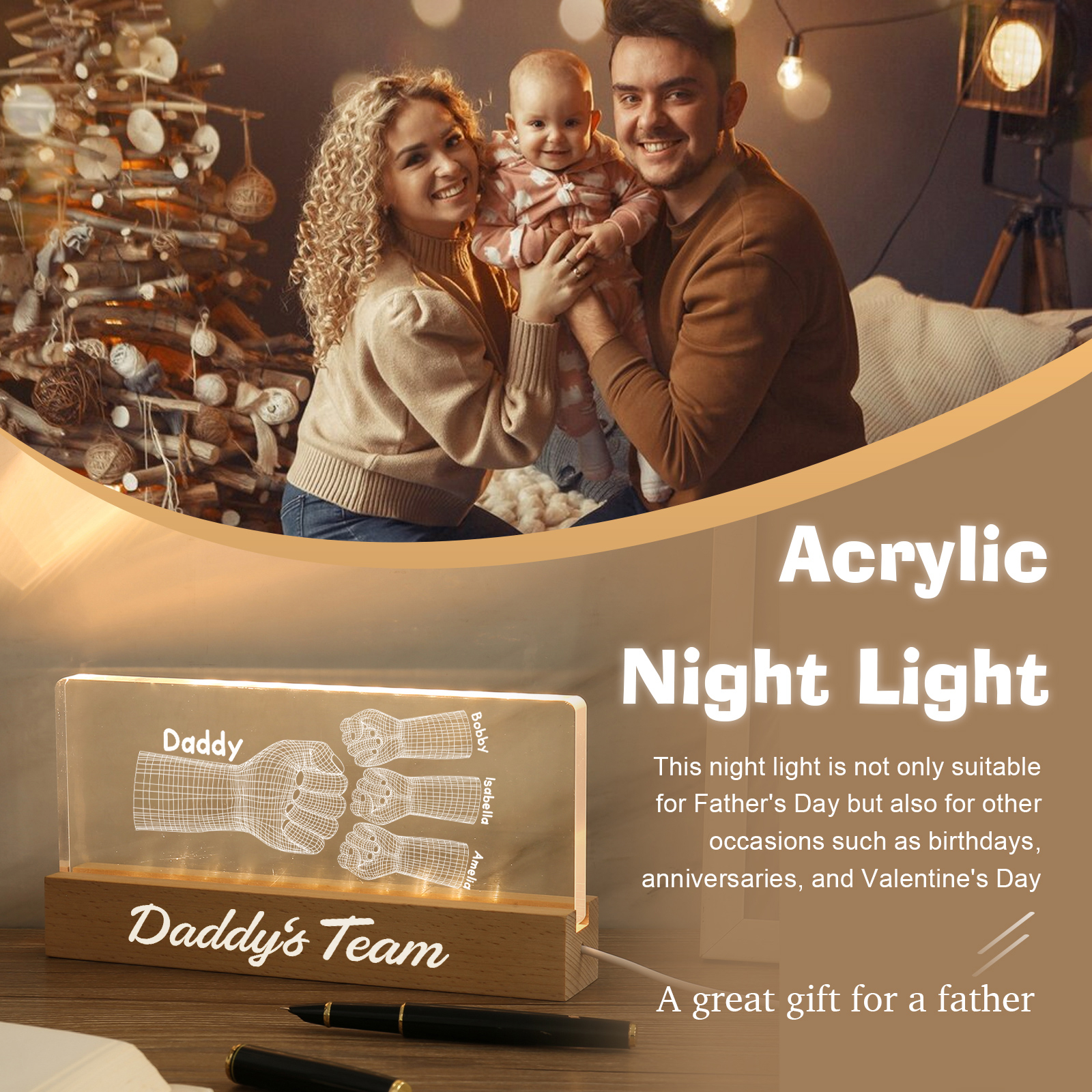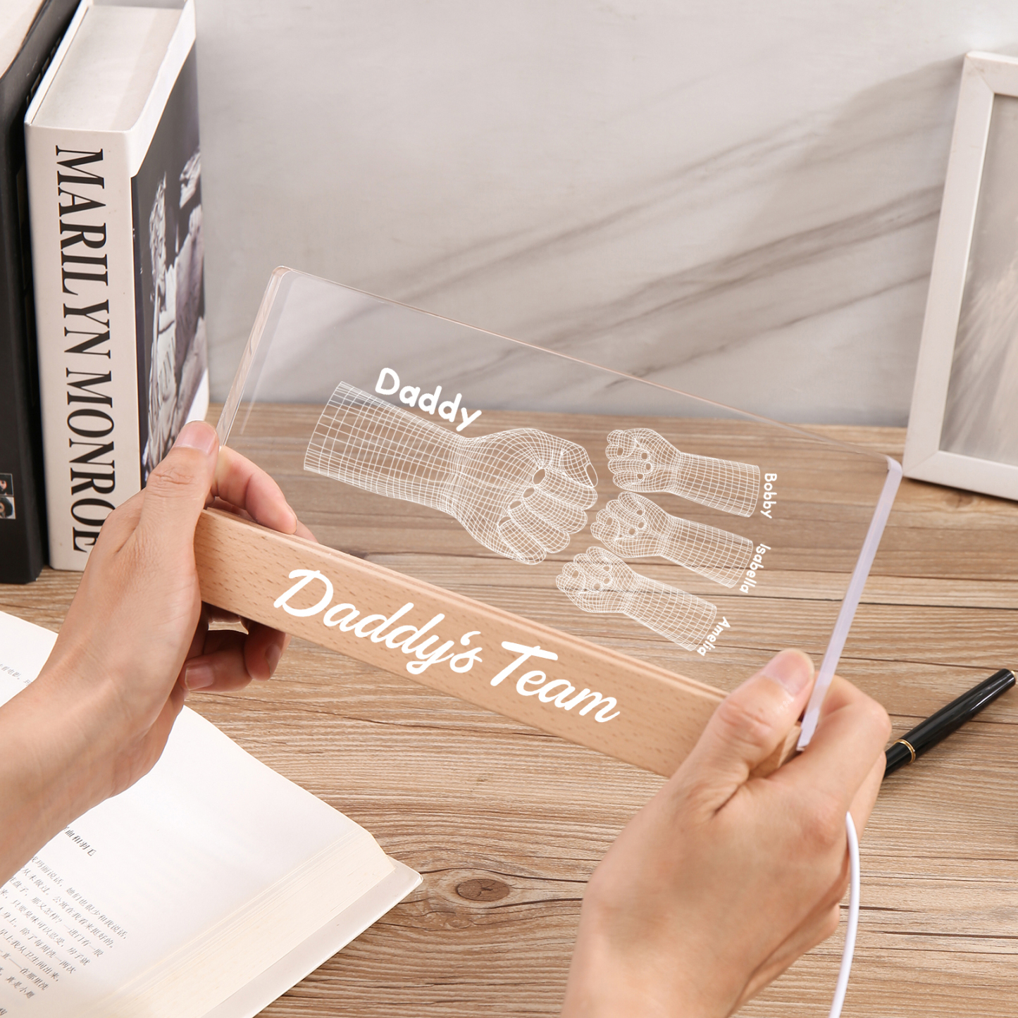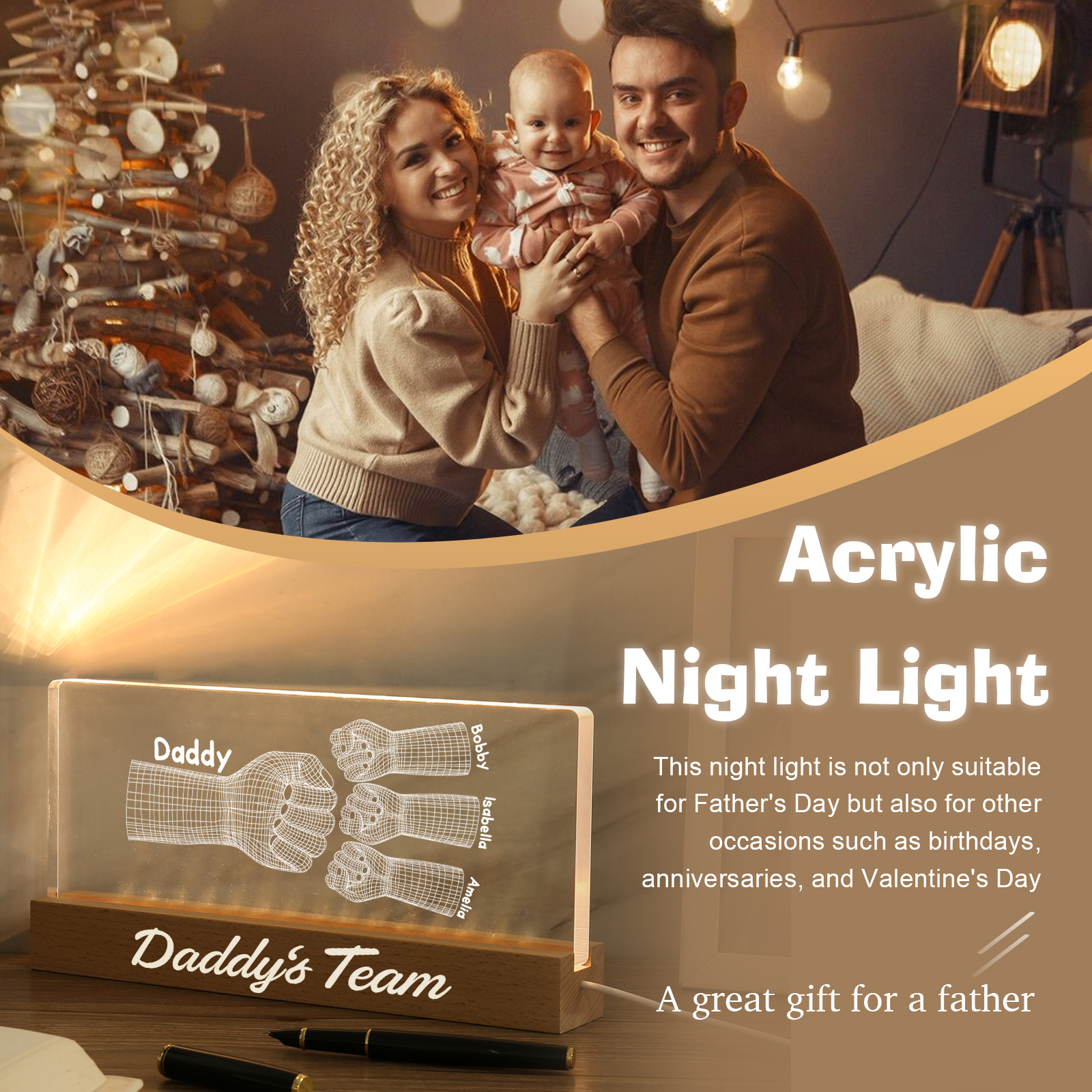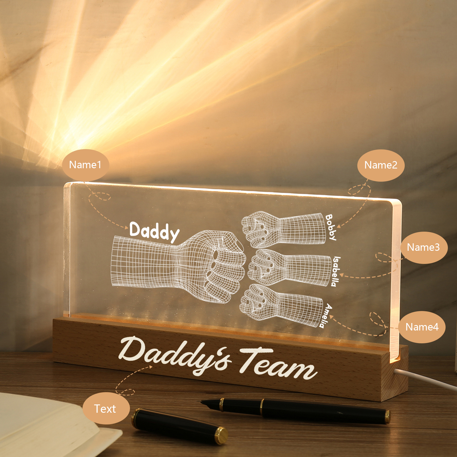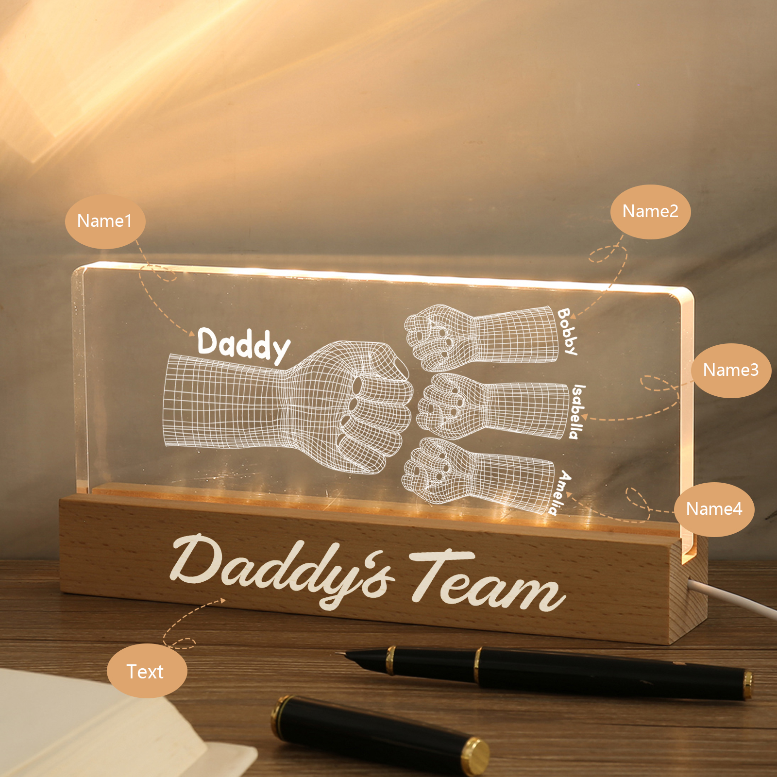 4 Names Personalized Fist Bump Pattern Night Light Custom Text LED Light Father's Day Gift for Dad