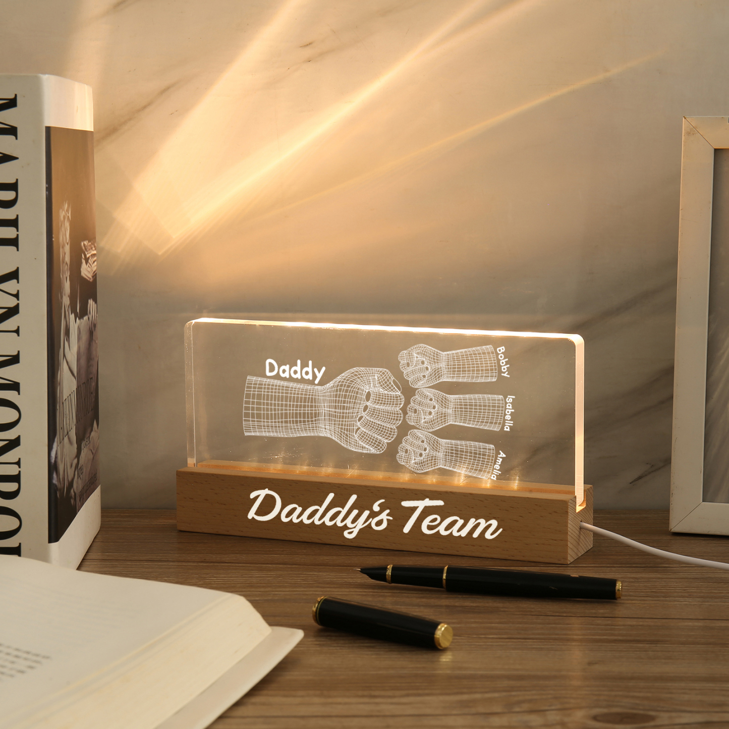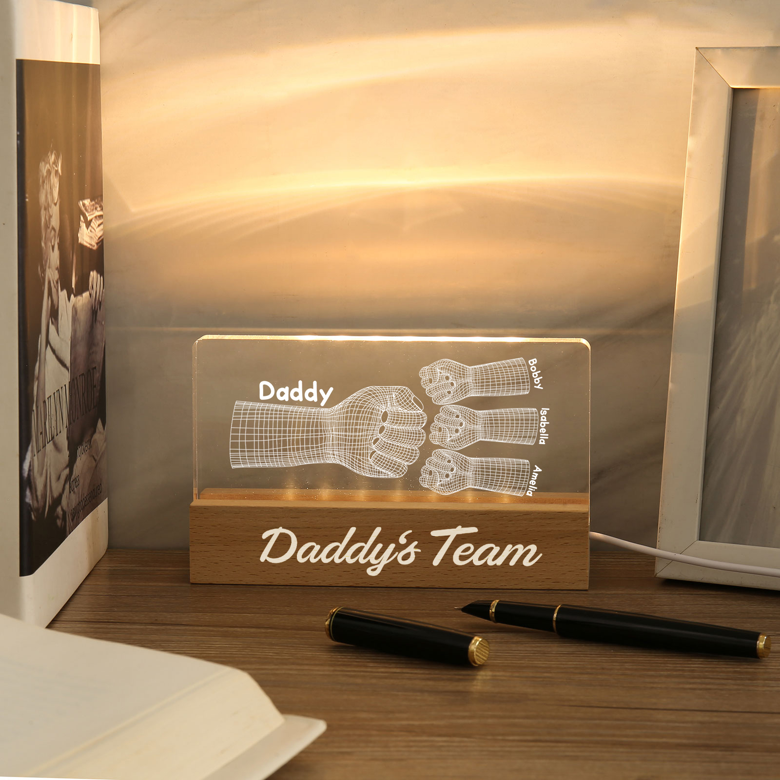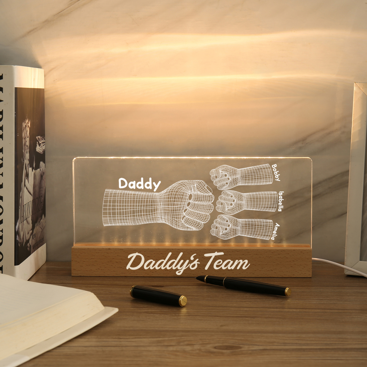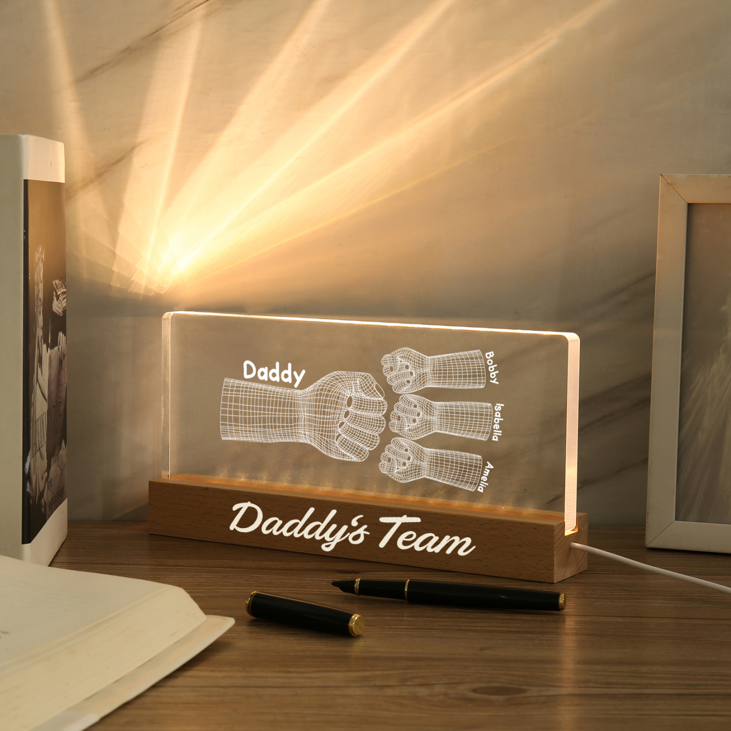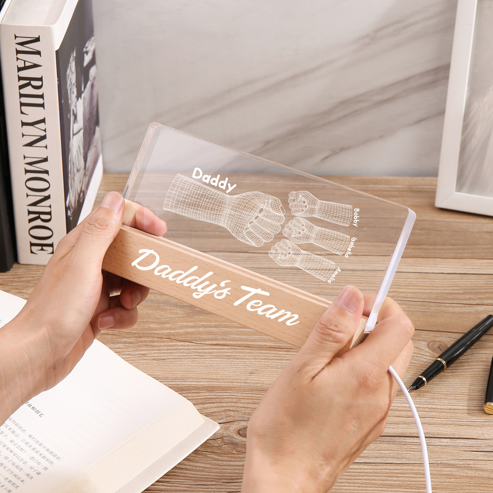 4 Names Personalized Fist Bump Pattern Night Light Custom Text LED Light Father's Day Gift for Dad