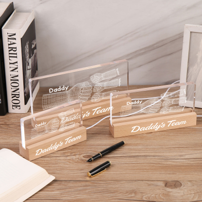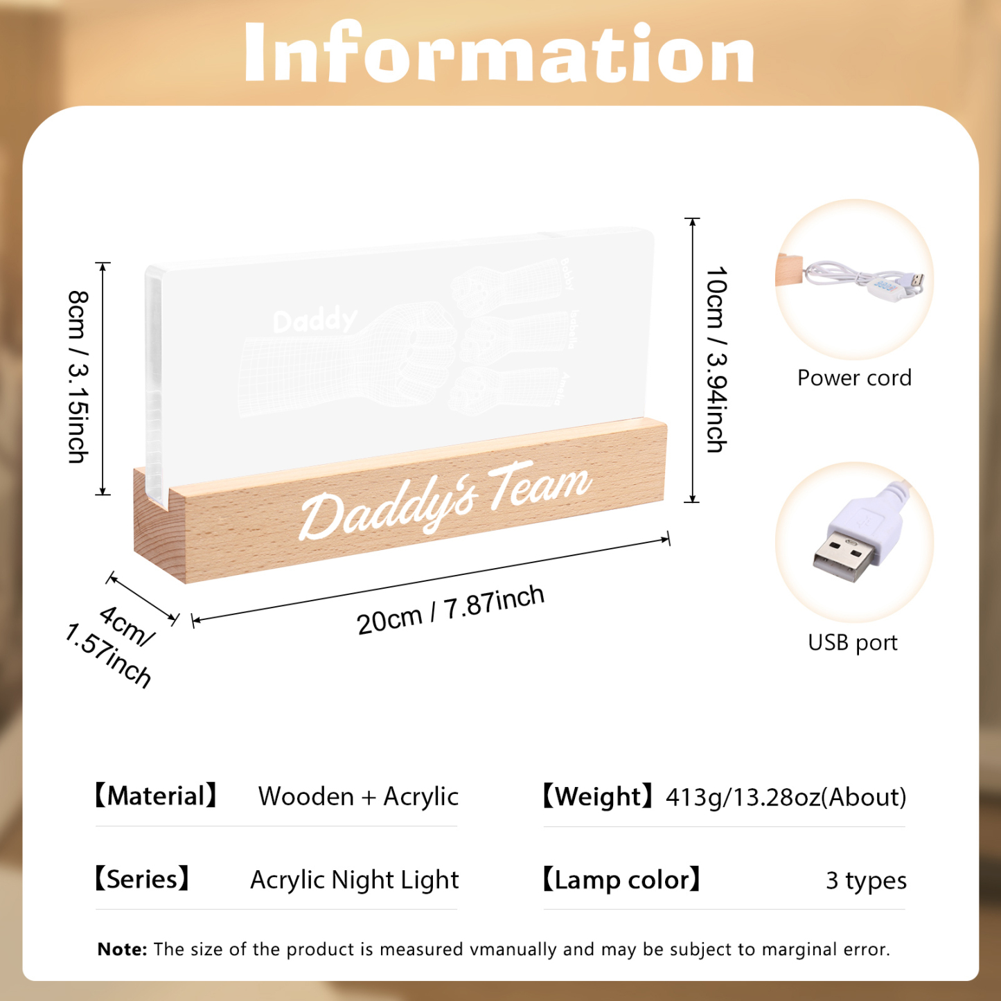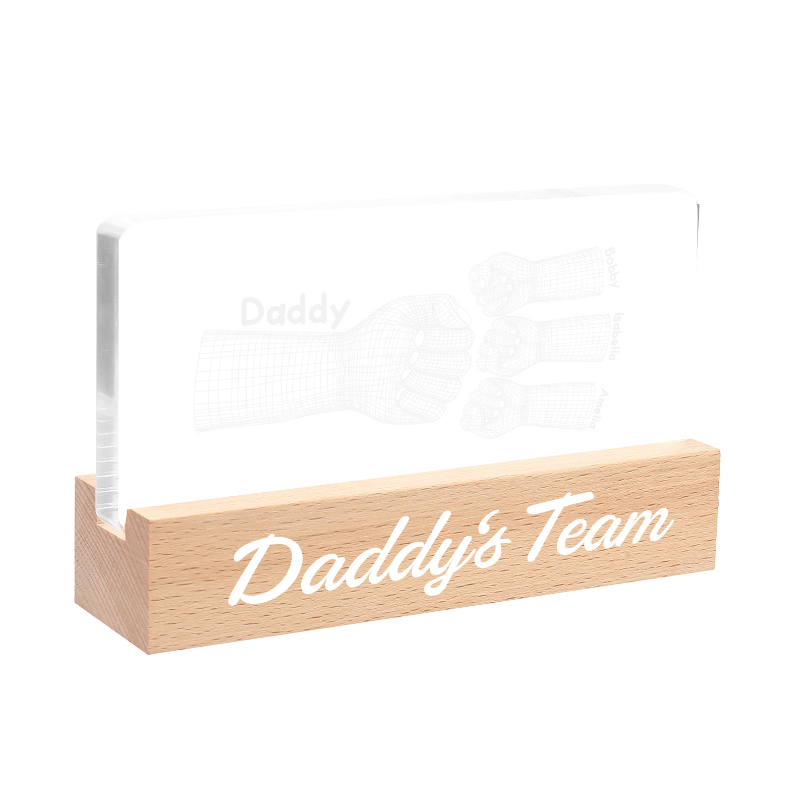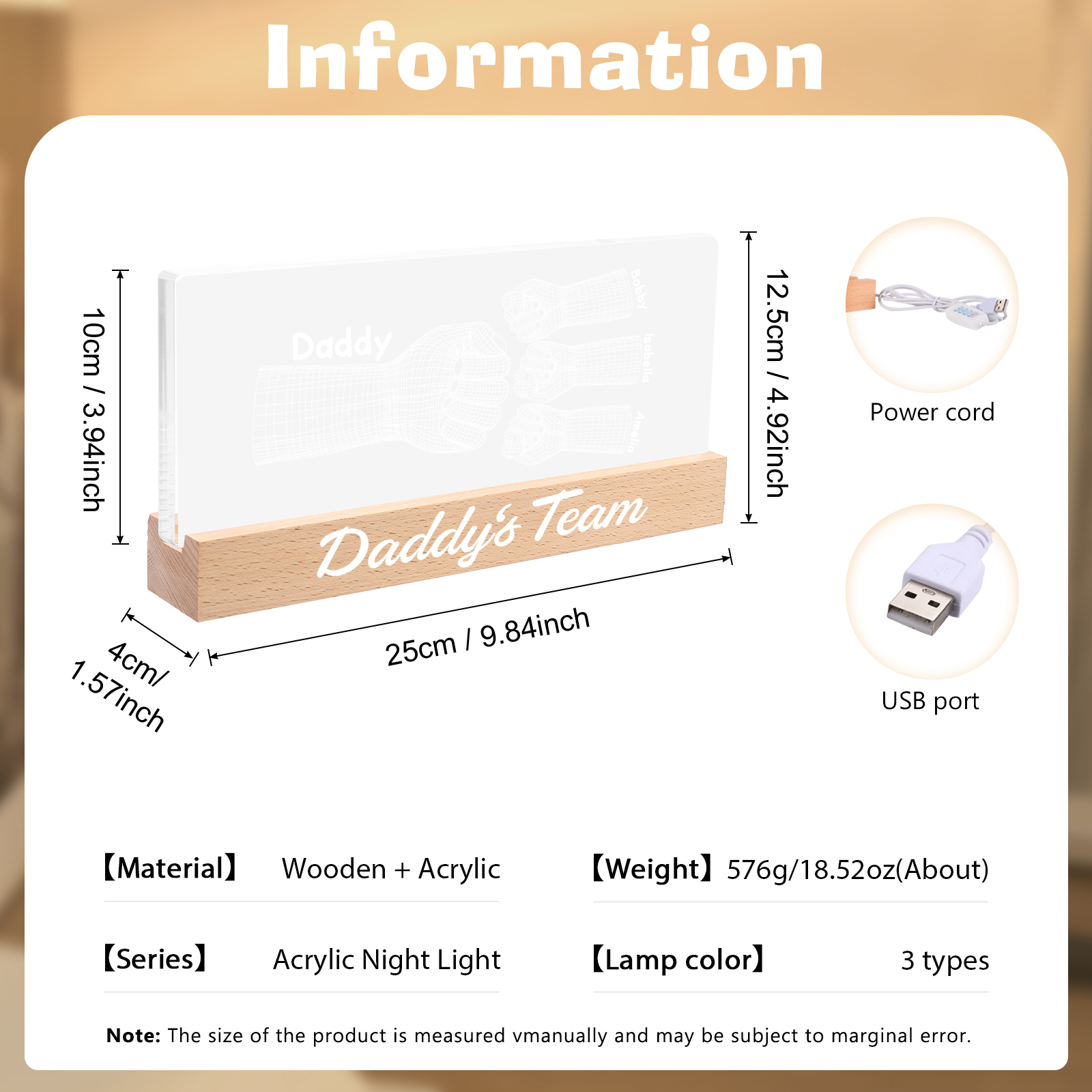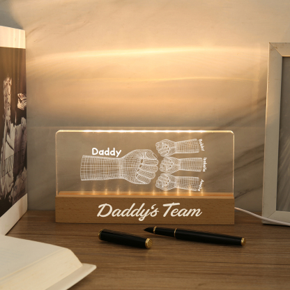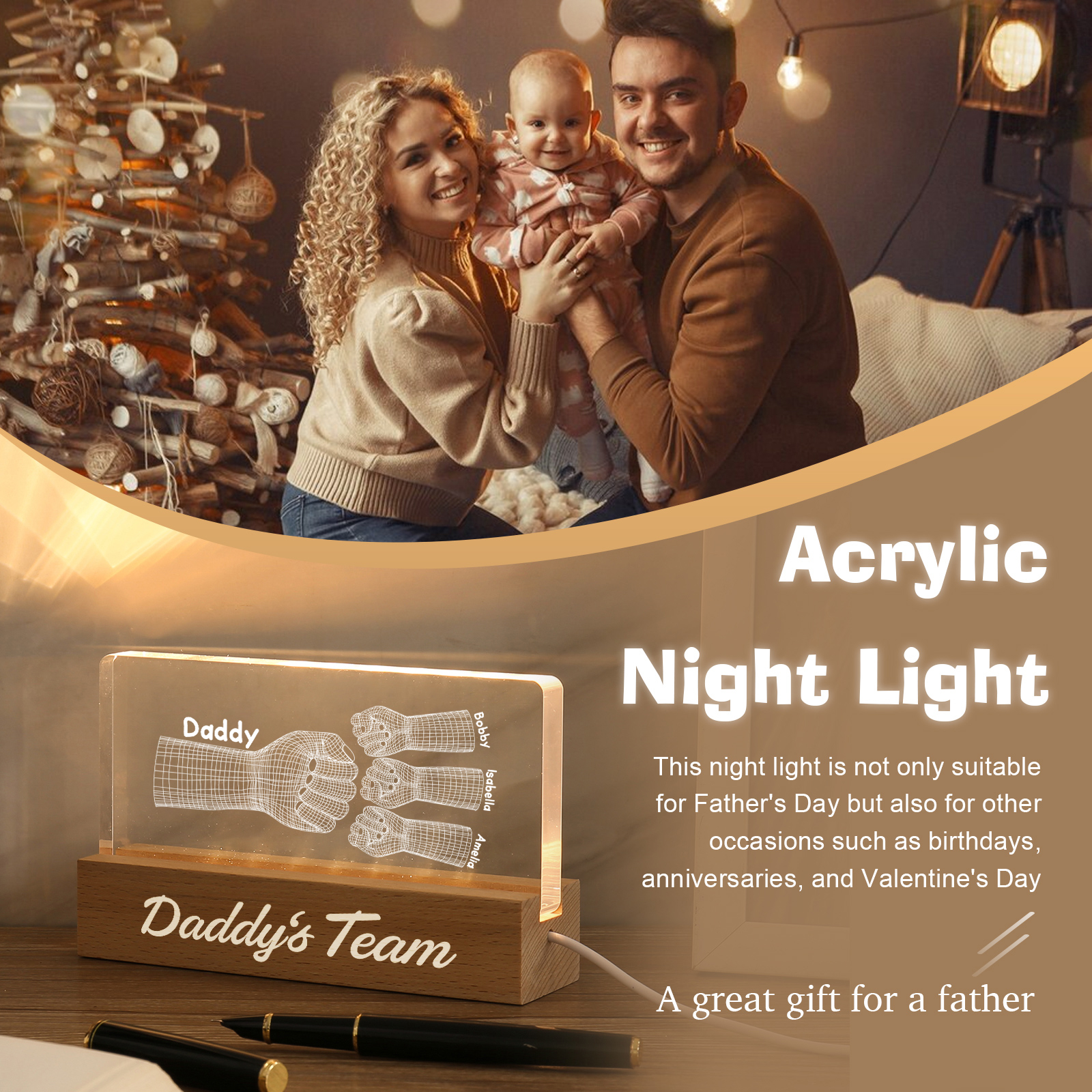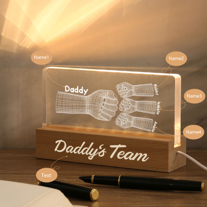 4 Names Personalized Fist Bump Pattern Night Light Custom Text LED Light Father's Day Gift for Dad