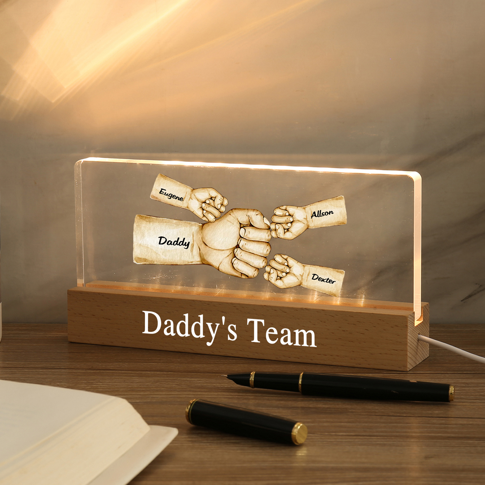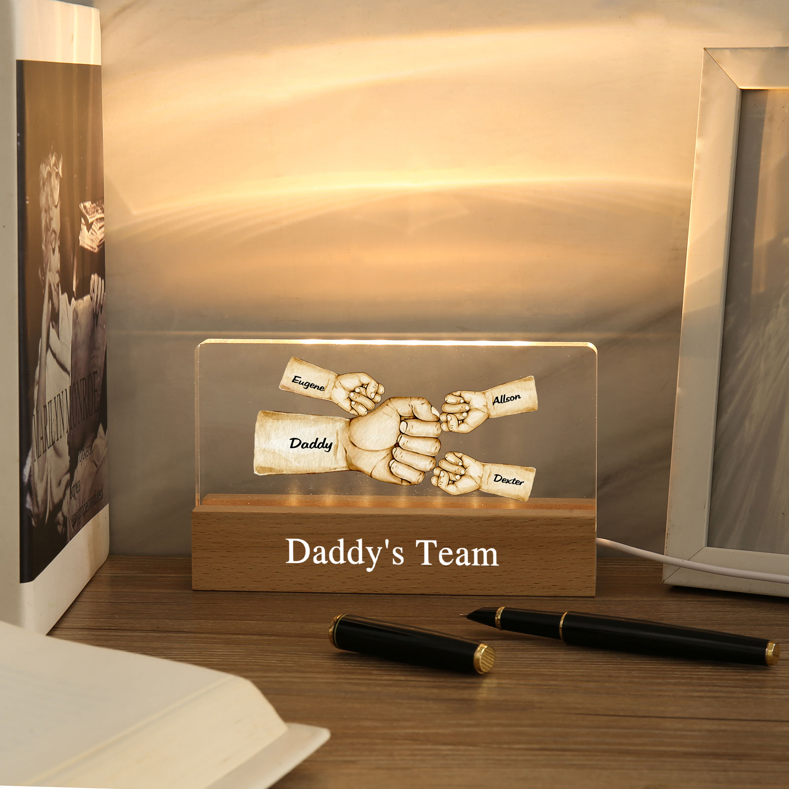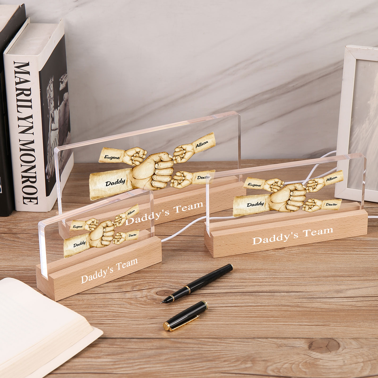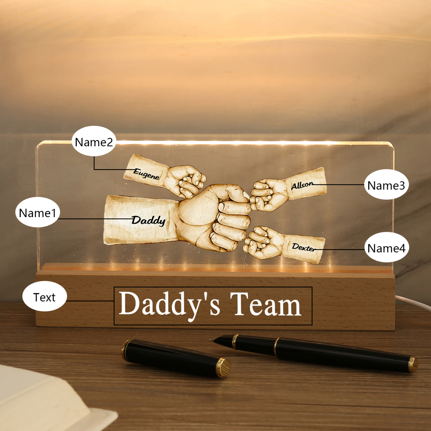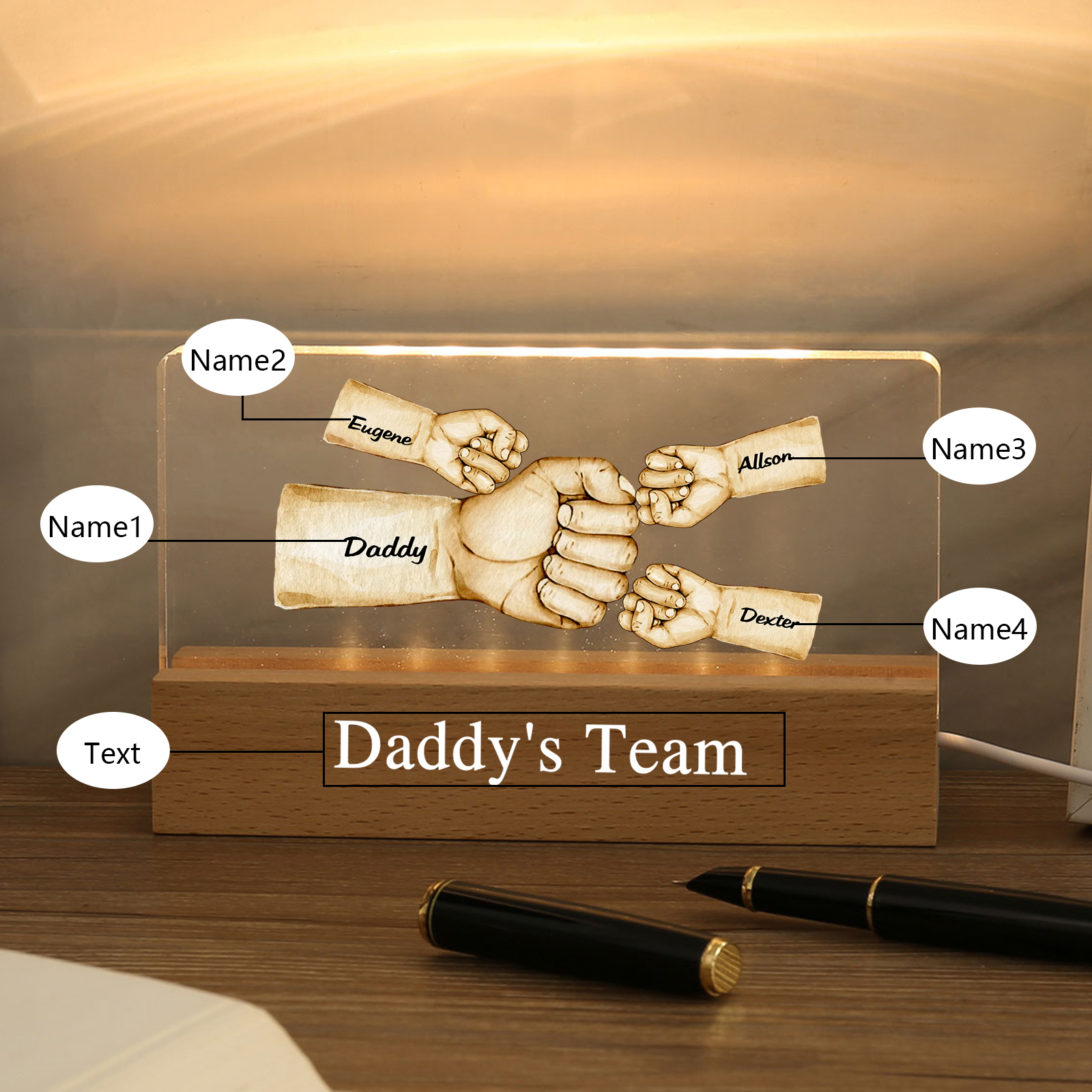 4 Names - Personalized Fist Bump Pattern Table Lamp Customized Text Father's Day Gift for Dad