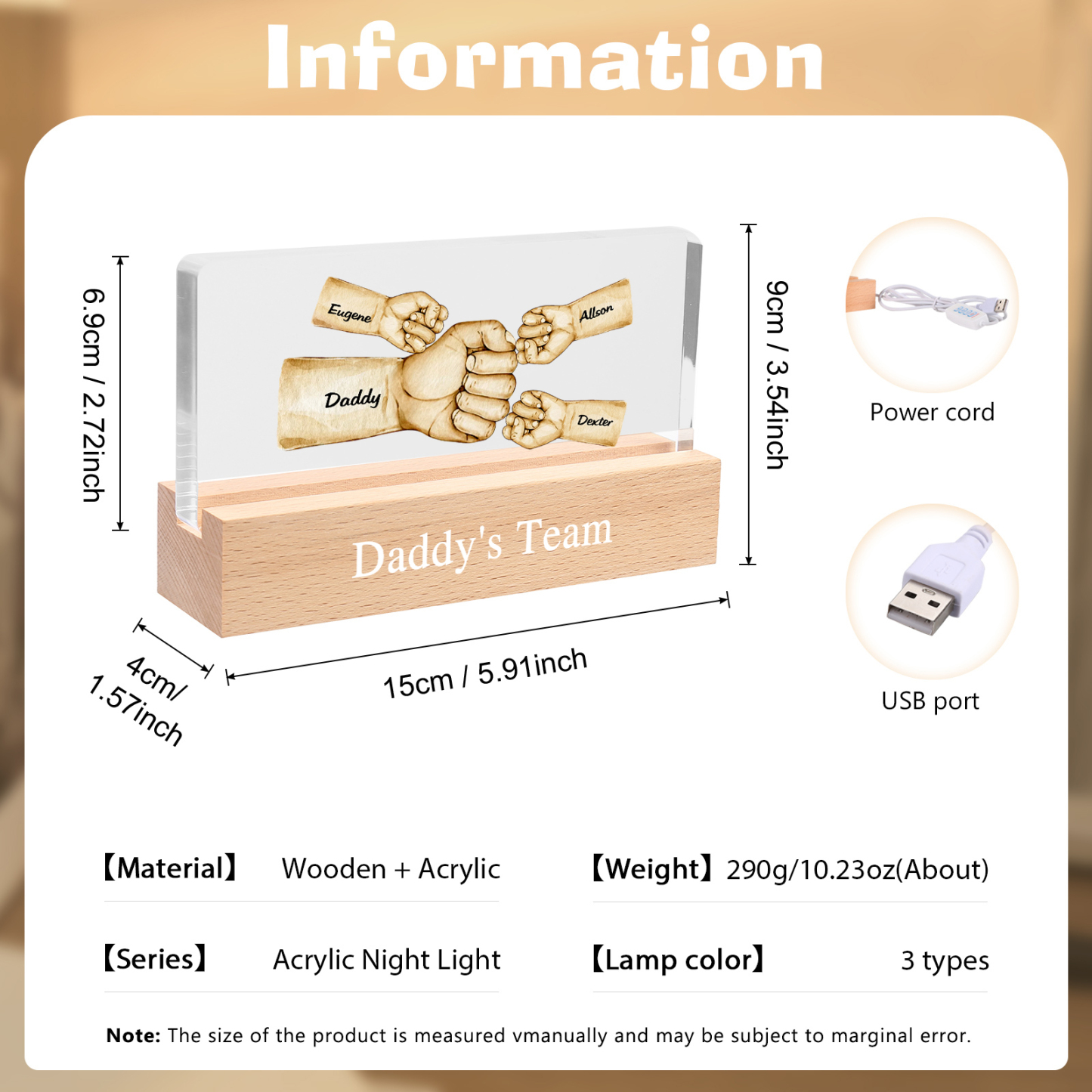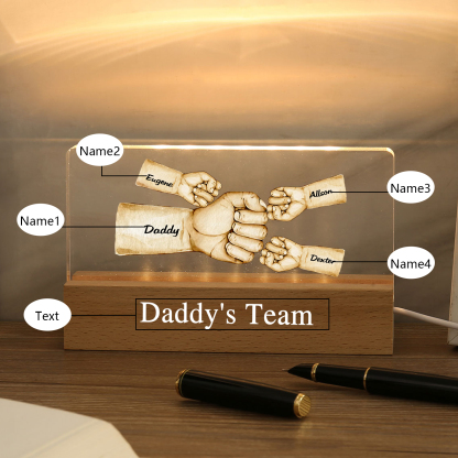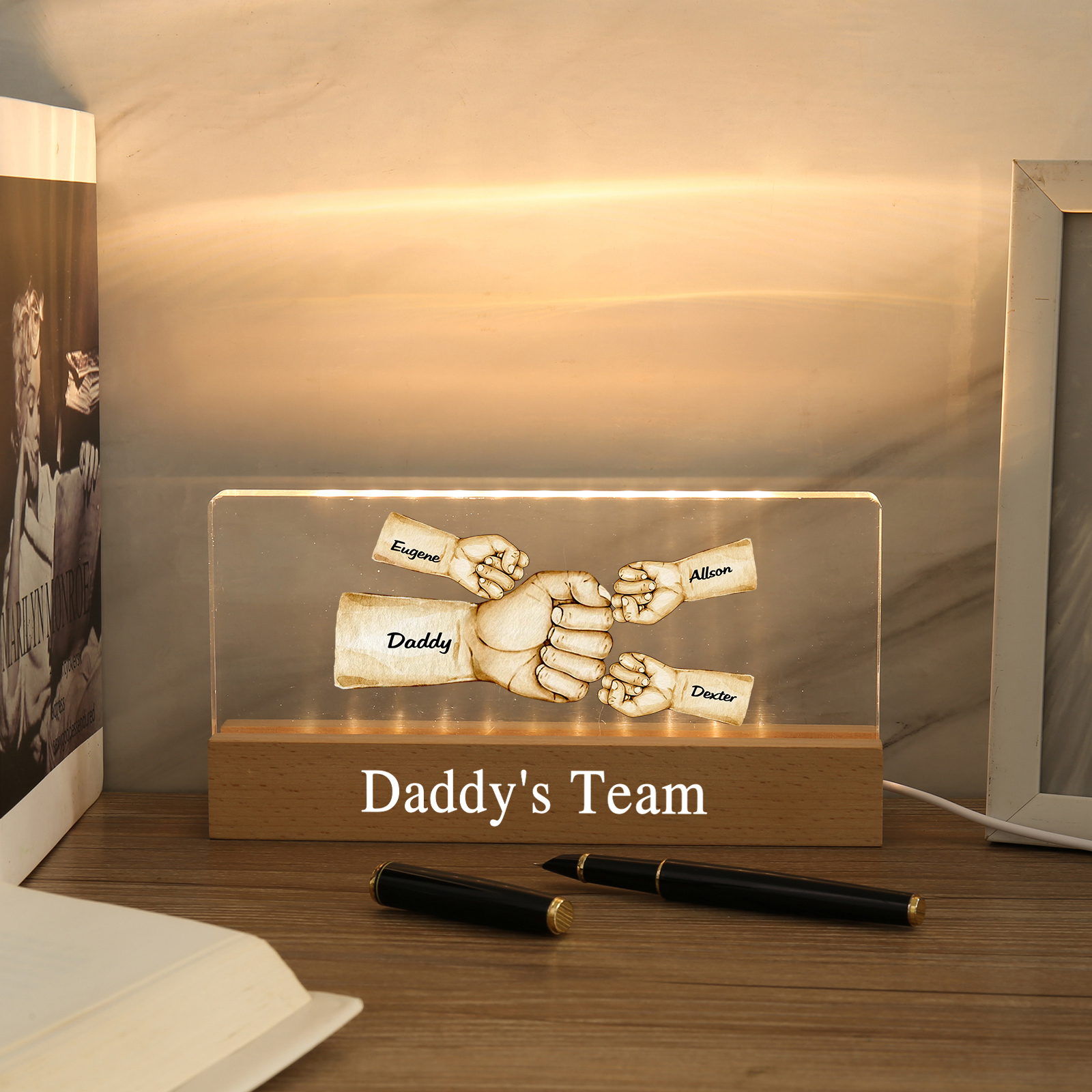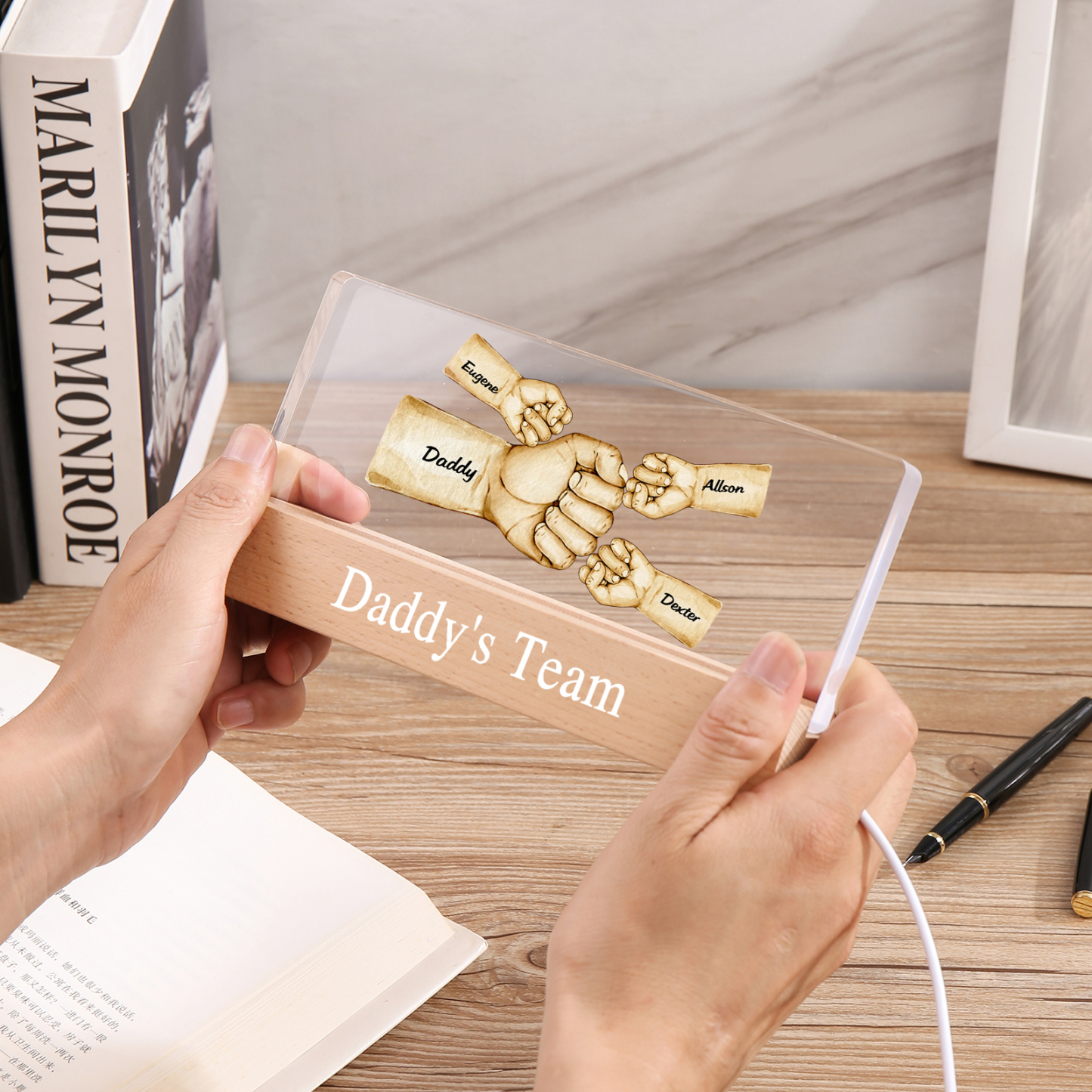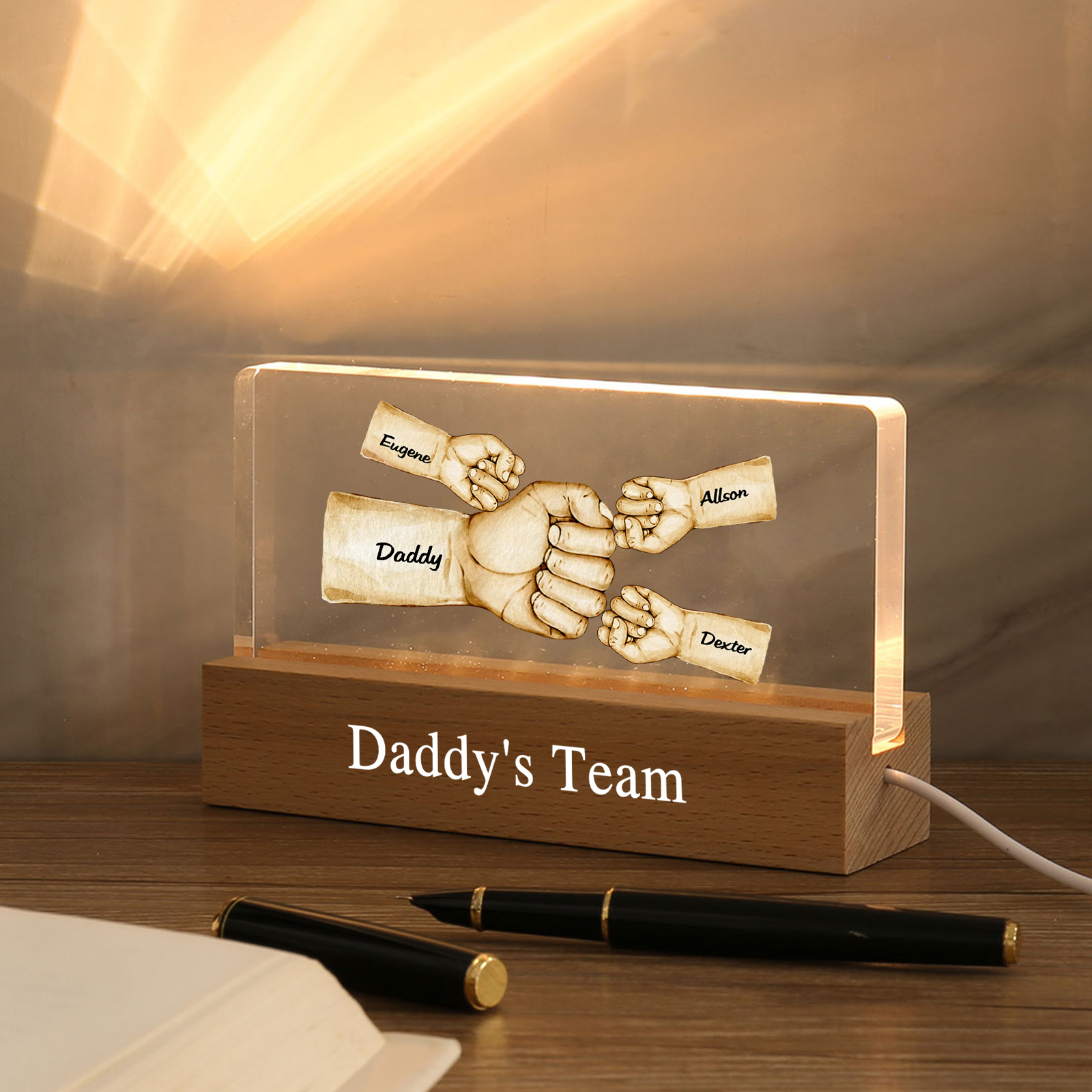 4 Names - Personalized Fist Bump Pattern Table Lamp Customized Text Father's Day Gift for Dad