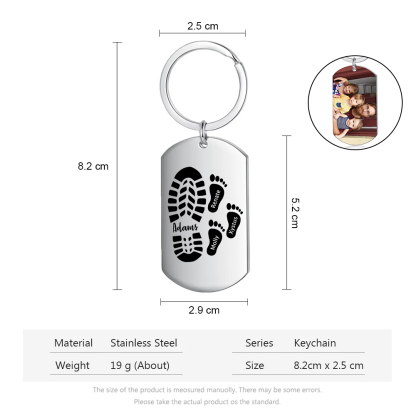 4 Names - Personalized Footprint Pattern Keychain Custom Named Father's Day Gift for Dad