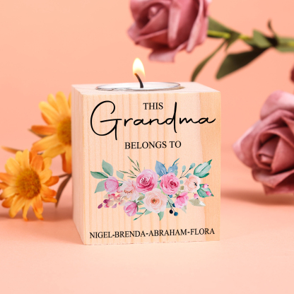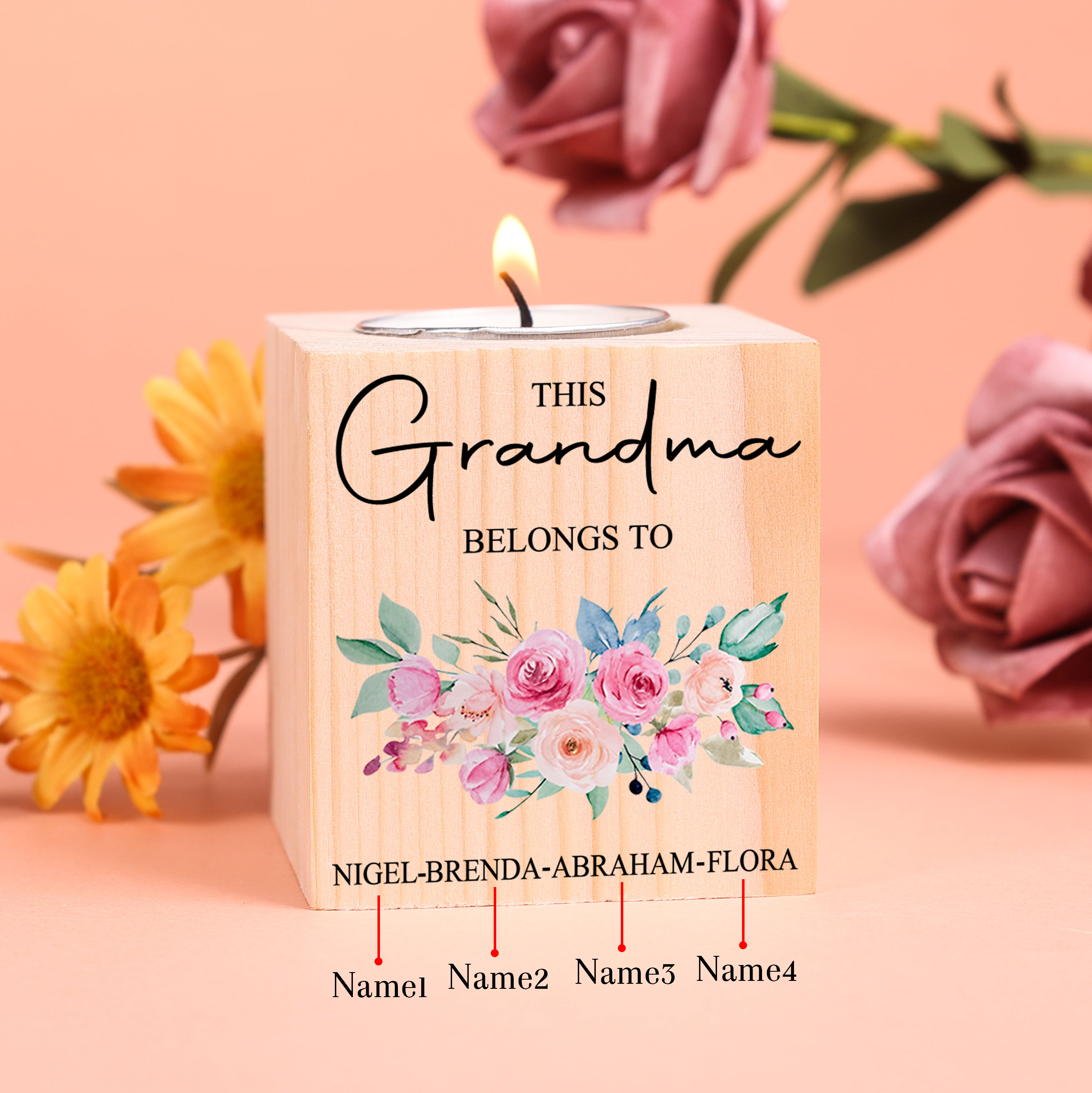 4 Names-Personalized Grandma Flower Candle Holder, Custom Name Family Candlestick for Nana-Special Parents Gift