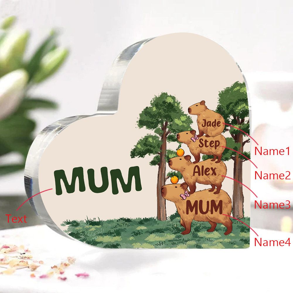 4 Names-Personalized Guinea Pig Jenga Acrylic Ornament-Custom Text Acrylic Family Heart Keepsake Desktop Ornament For Family