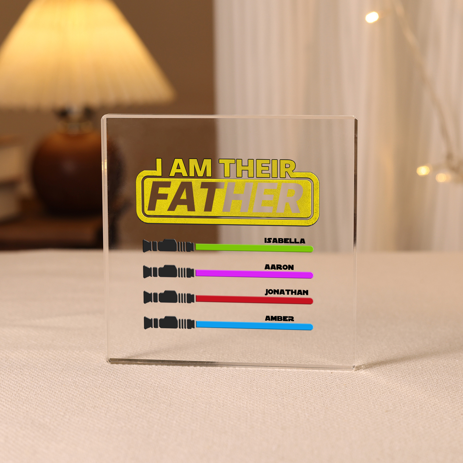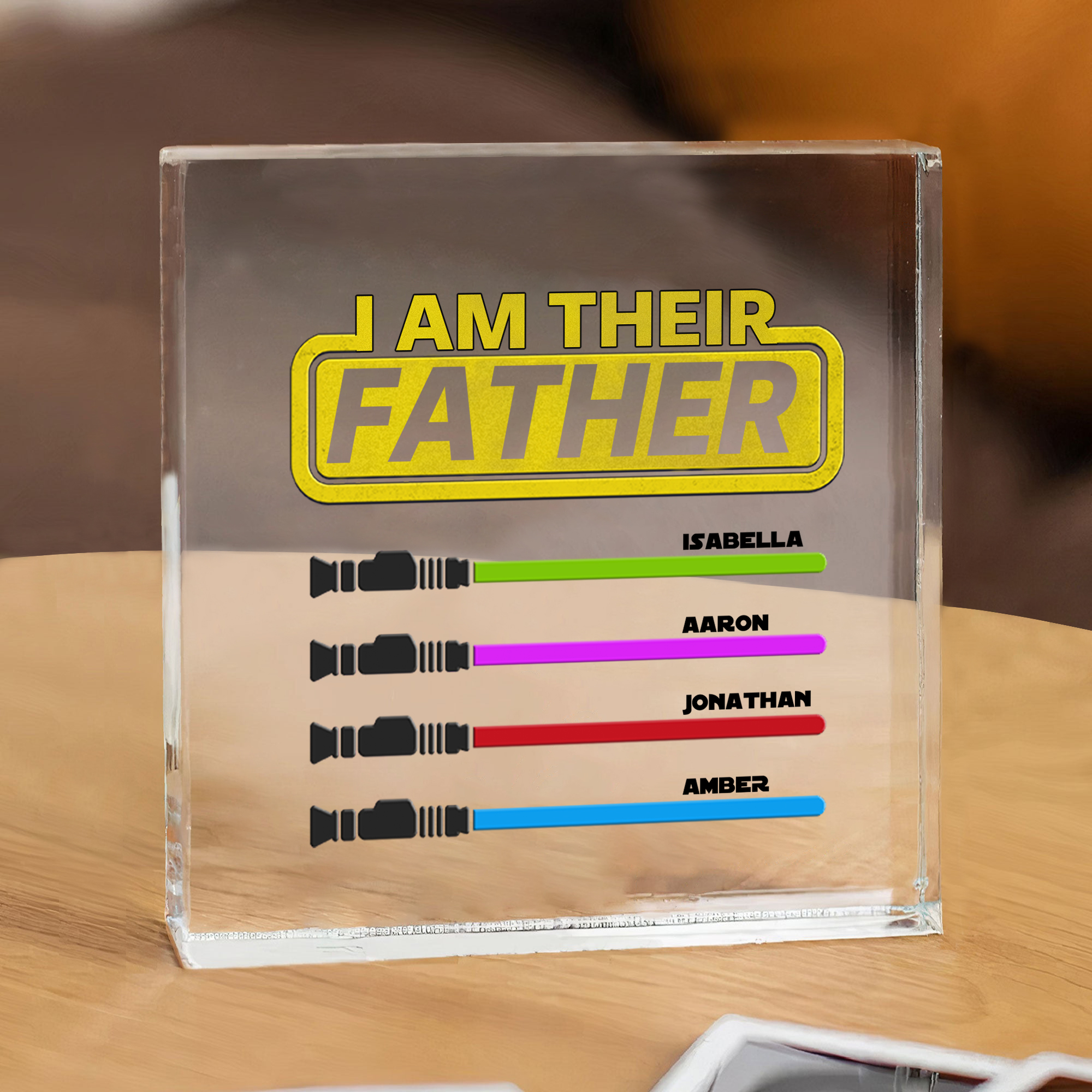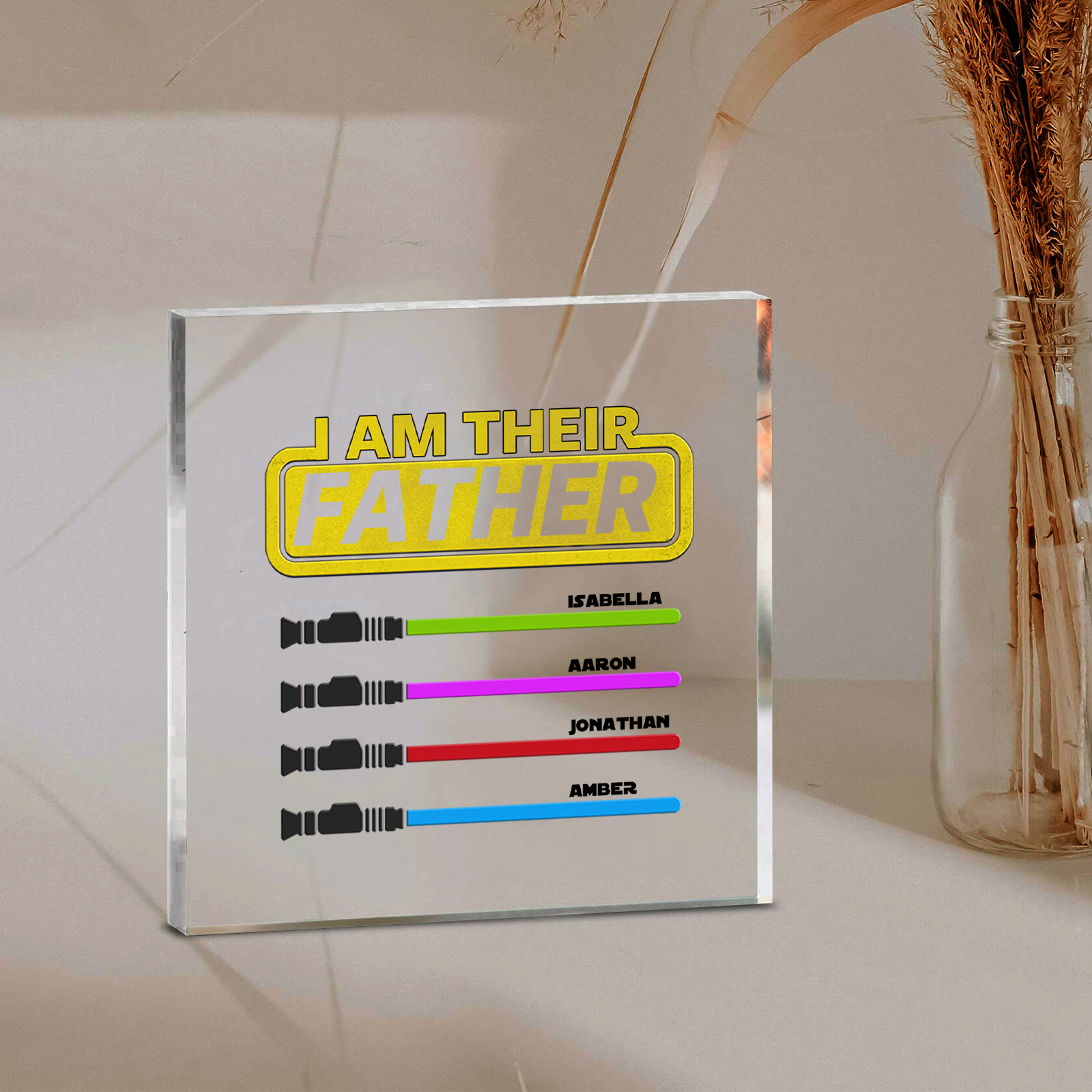 4 Names - Personalized Gun Pattern Family Acrylic Keepsake Customized Name Acrylic Home Decor Gift for Dad
