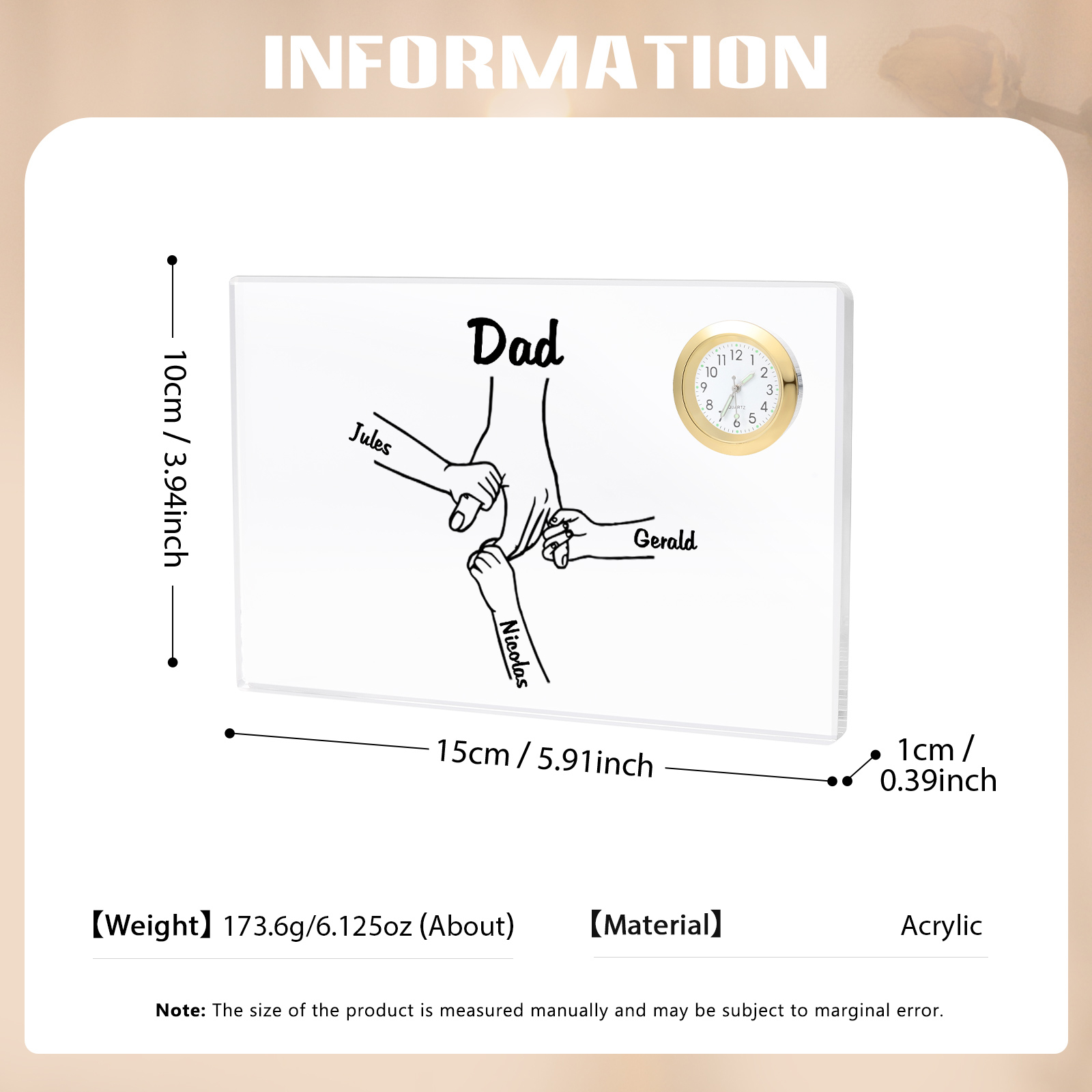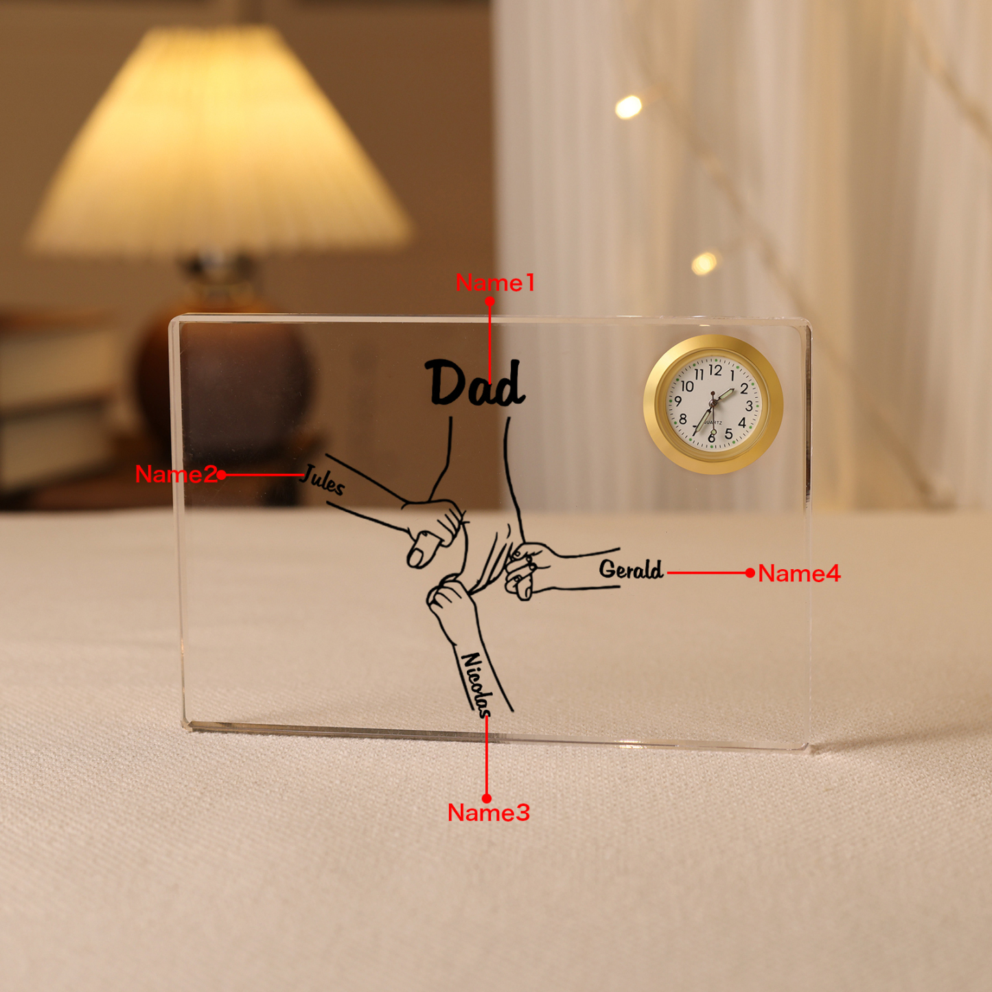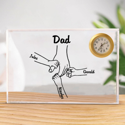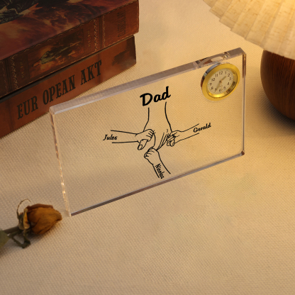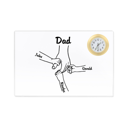 4 Names - Personalized Holding Hands Pattern Custom Name Acrylic Rectangular Clock Ornament Father's Day Gift