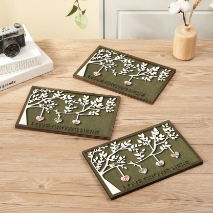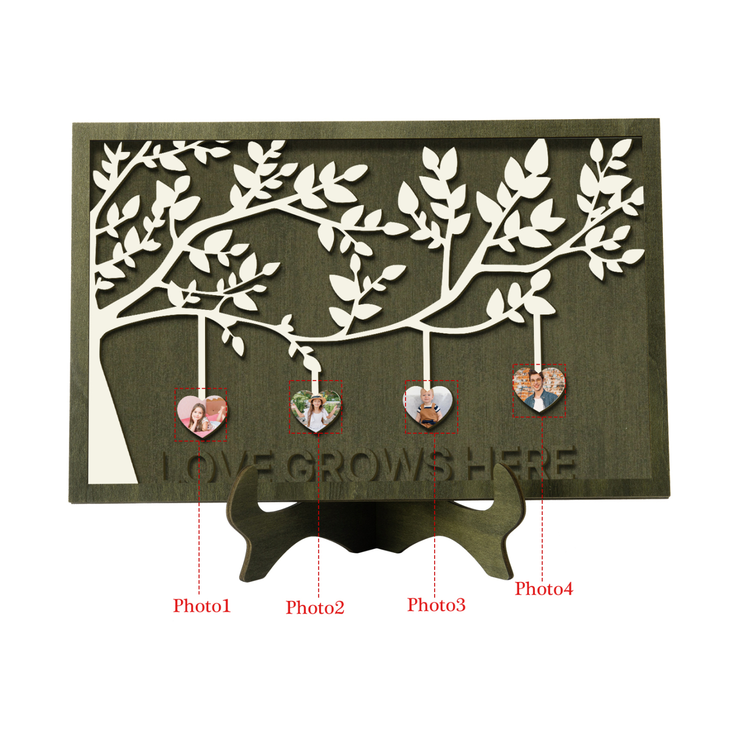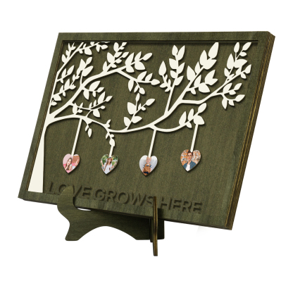 4 Photos-Personalized Family Tree Decoration Wooden Ornaments Love Grows Here Concave And Convex Frame Custom Photos For Family