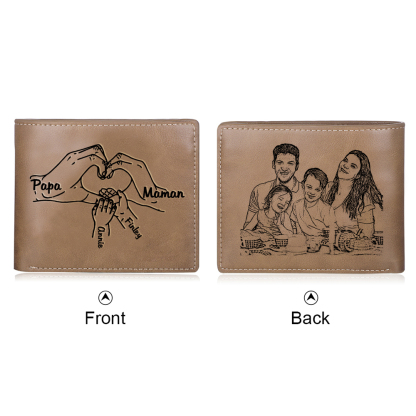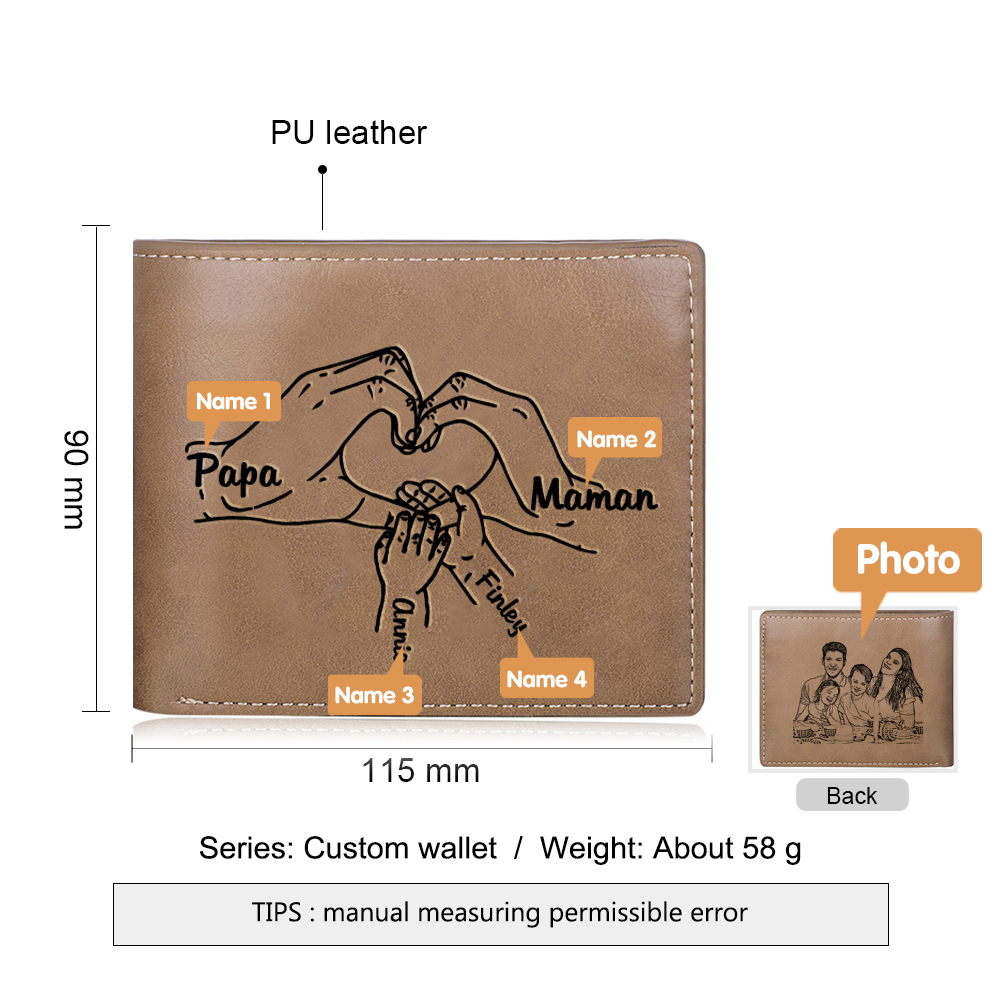4 Names-Personalized Leather Mens Wallet Engraved 4 Names And Photo Fist Bump Folding Wallet Set With Gift Card Gift Box Father's Day Gifts