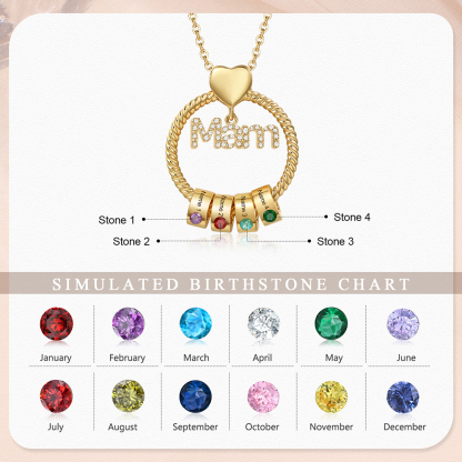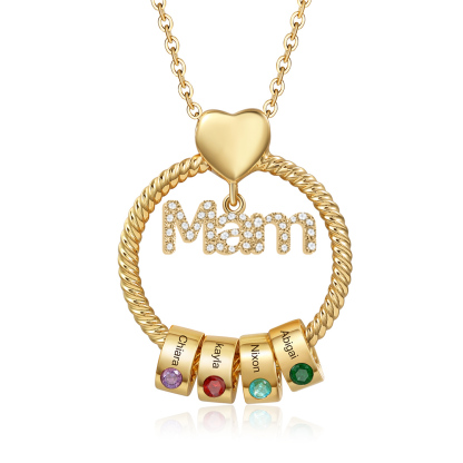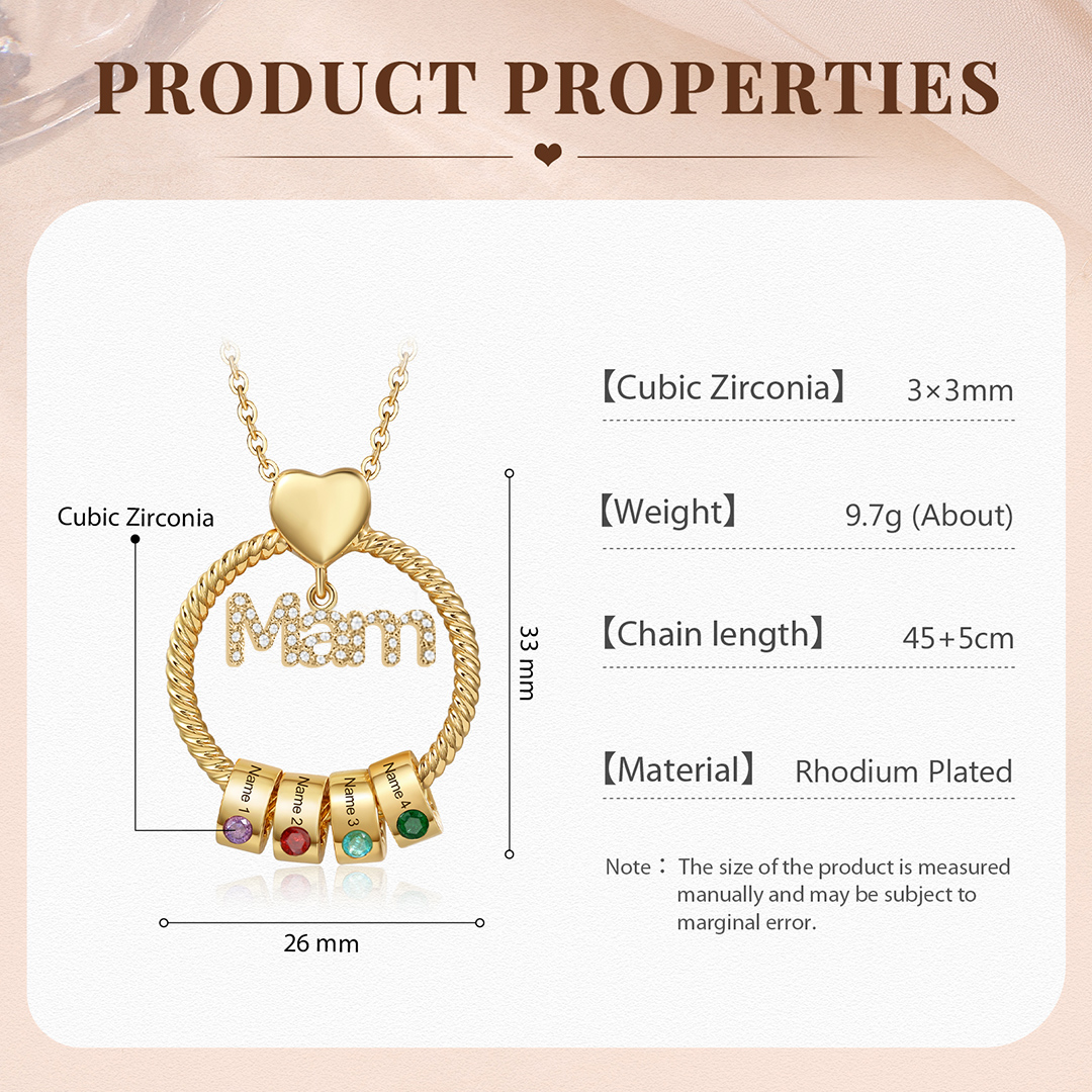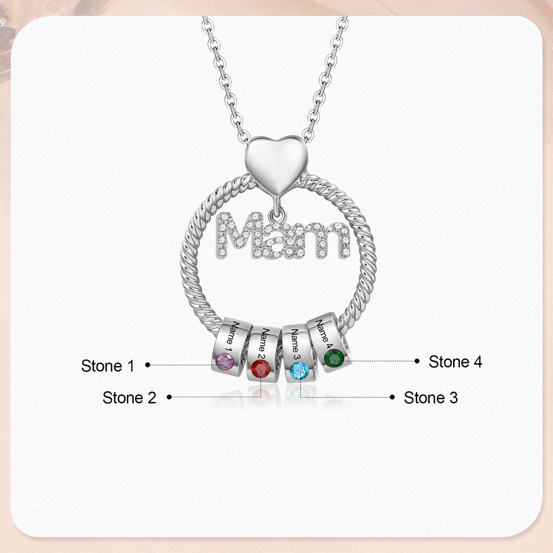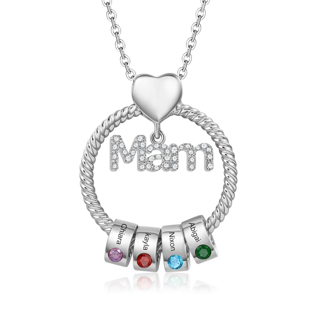 4 Names-Personalized Mam Circle Necklace With 4 Birthstones Pendant Engraved Names Gift For Mother