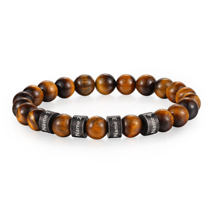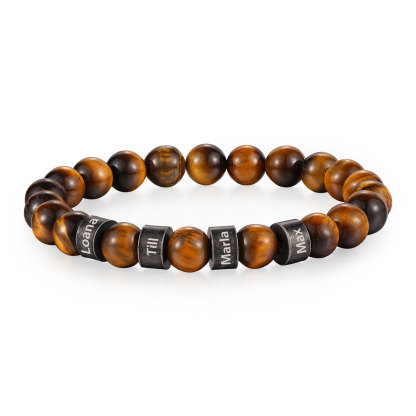 4 Names-Personalized Men Tiger's Eye A Goods Bracelet Engraved With Names, Custom Special Men Names Bracelet