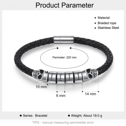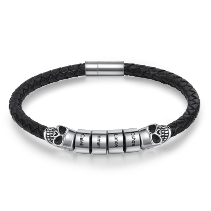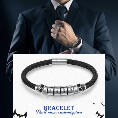 🎁Our Skull Men's Leather Bracelet is the perfect Halloween gift with a personal touch! This trendy accessory can be customized with 1-5 names, making it a unique and meaningful keepsake. Crafted from high-quality leather, this bracelet features an eye-catching skull design that adds a touch of edgy style to any outfit.