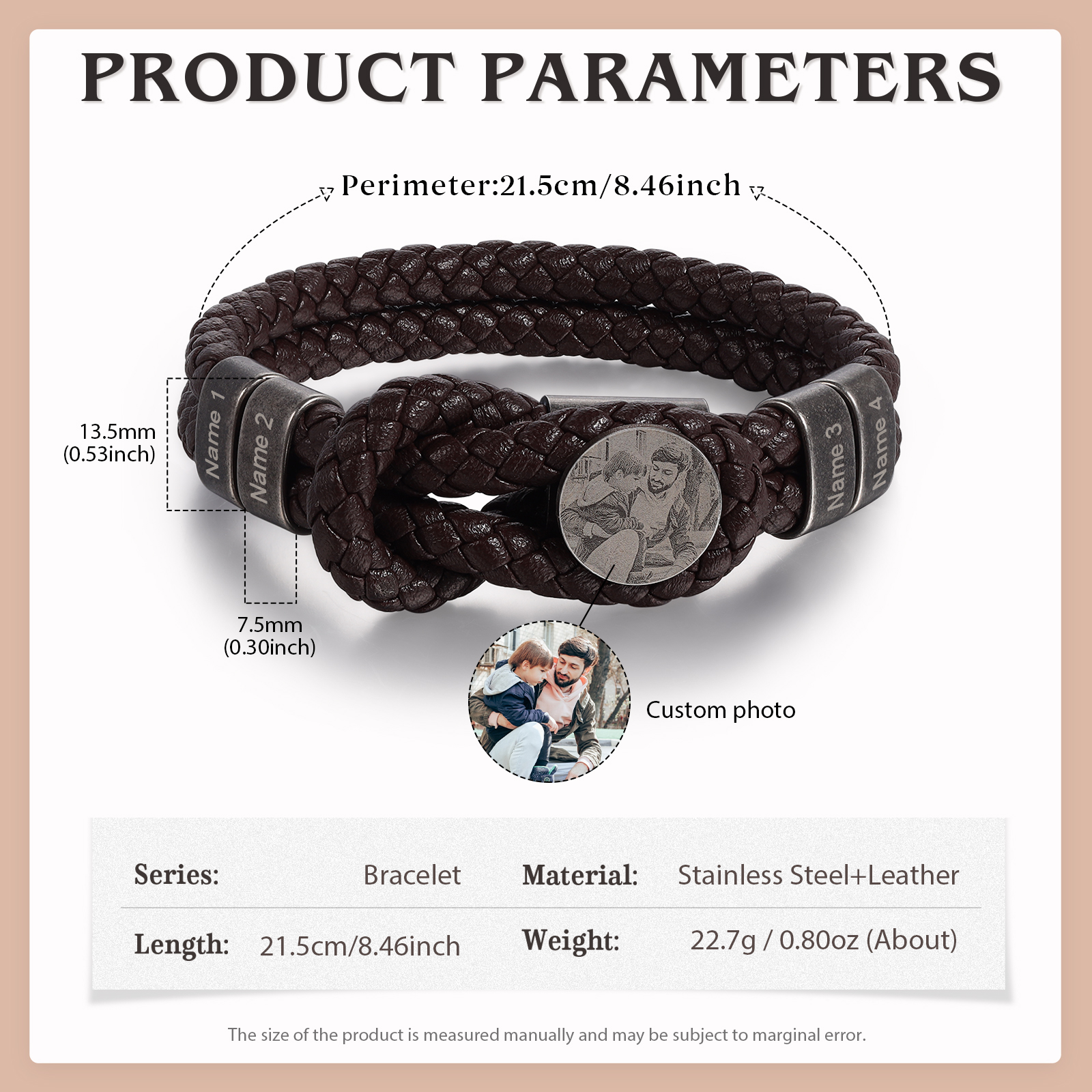What sets our product apart is its customization option. The bracelet can be personalized with 1 photo and 2-5 names, allowing you to make a truly one-of-a-kind piece. Whether it's a cherished family photo or the names of loved ones, this unique feature lets you keep meaningful memories close at hand.
