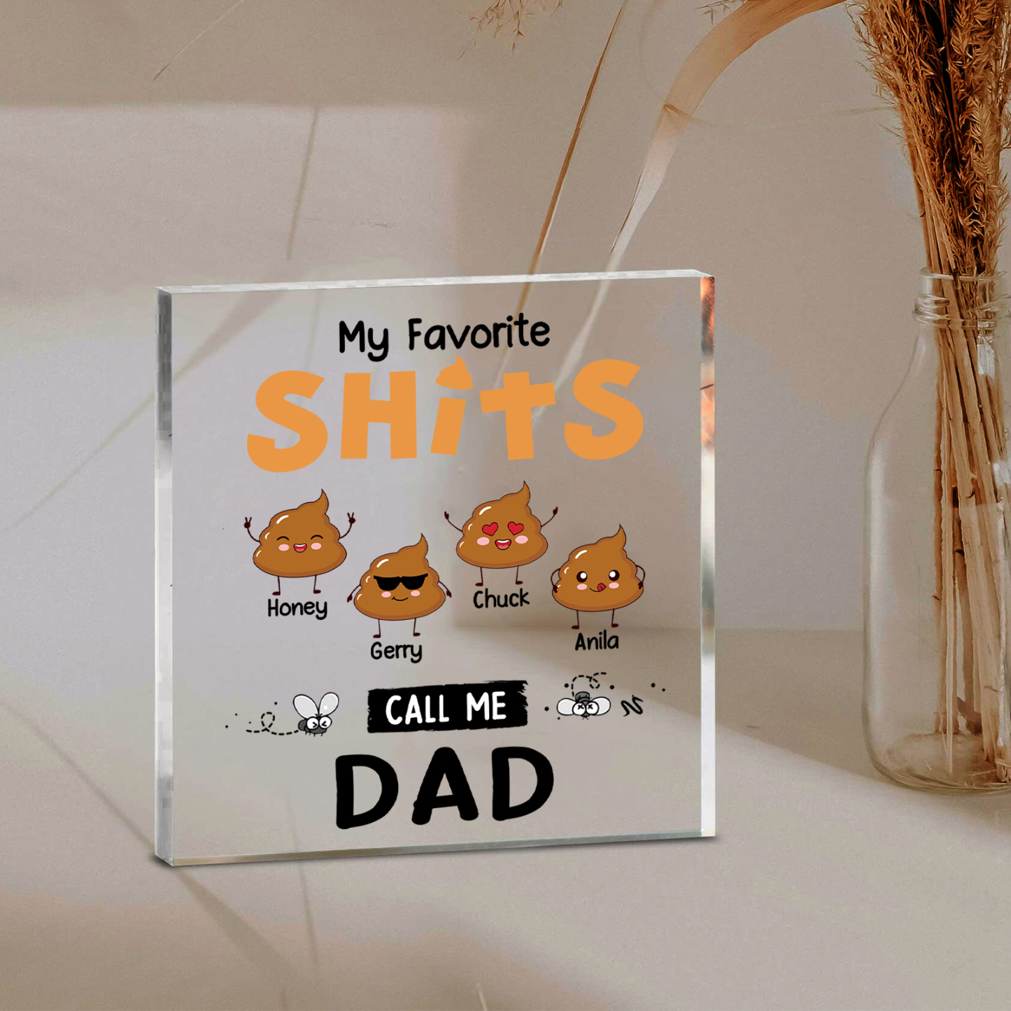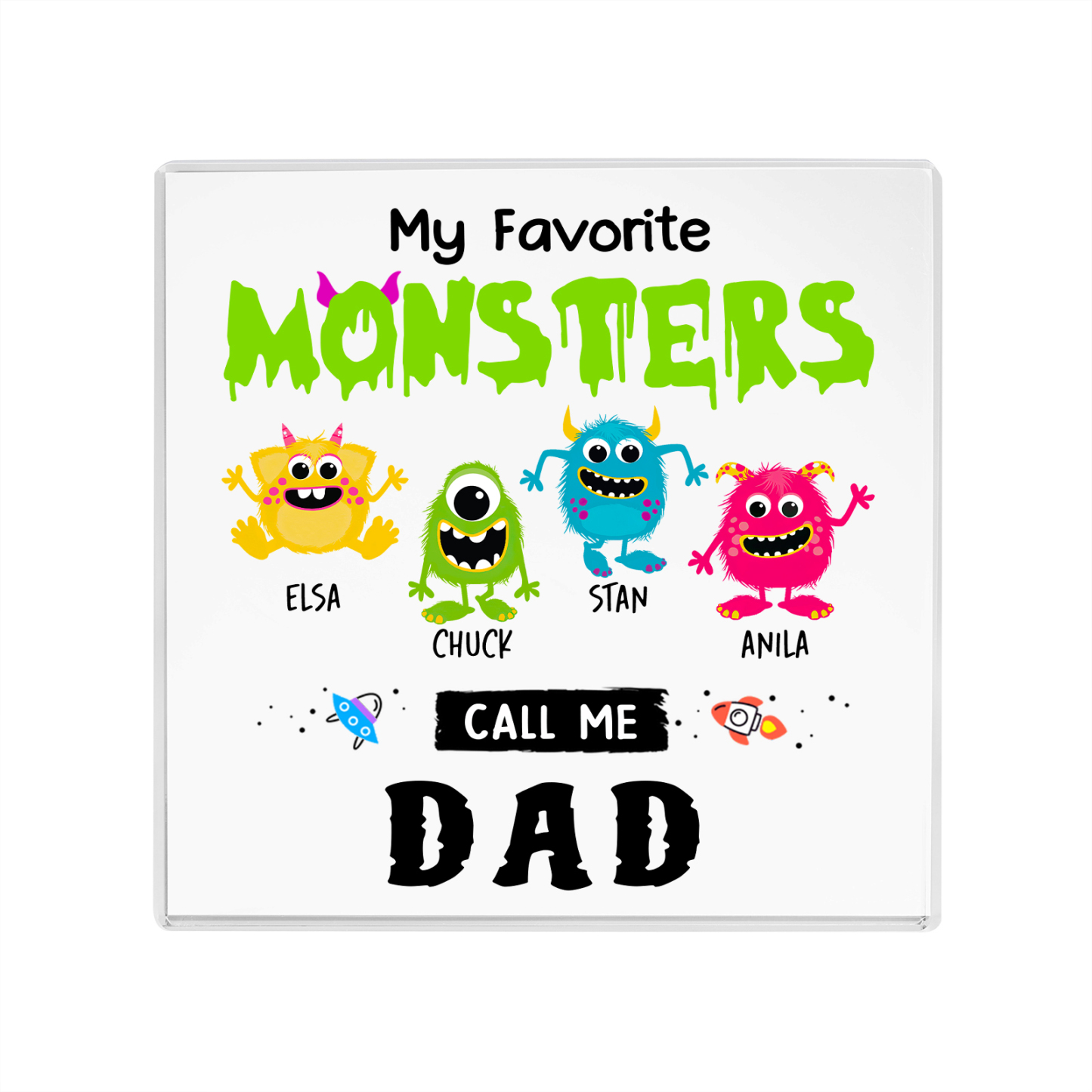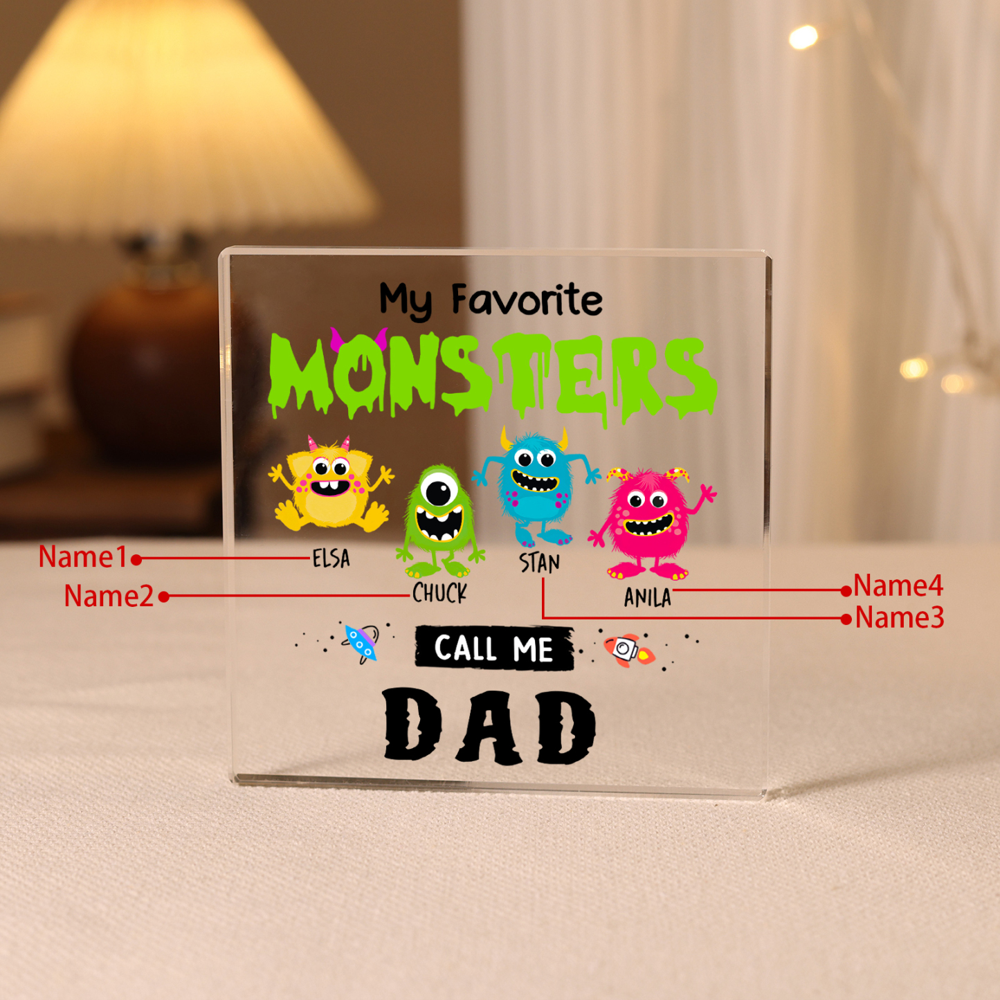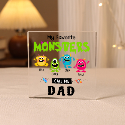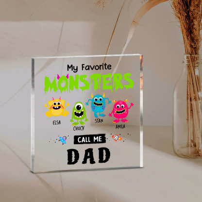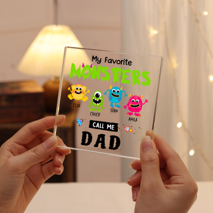 4 Names - Personalized Monster and Shit Style Custom Name Acrylic Ornament Father's Day Gift for Dad