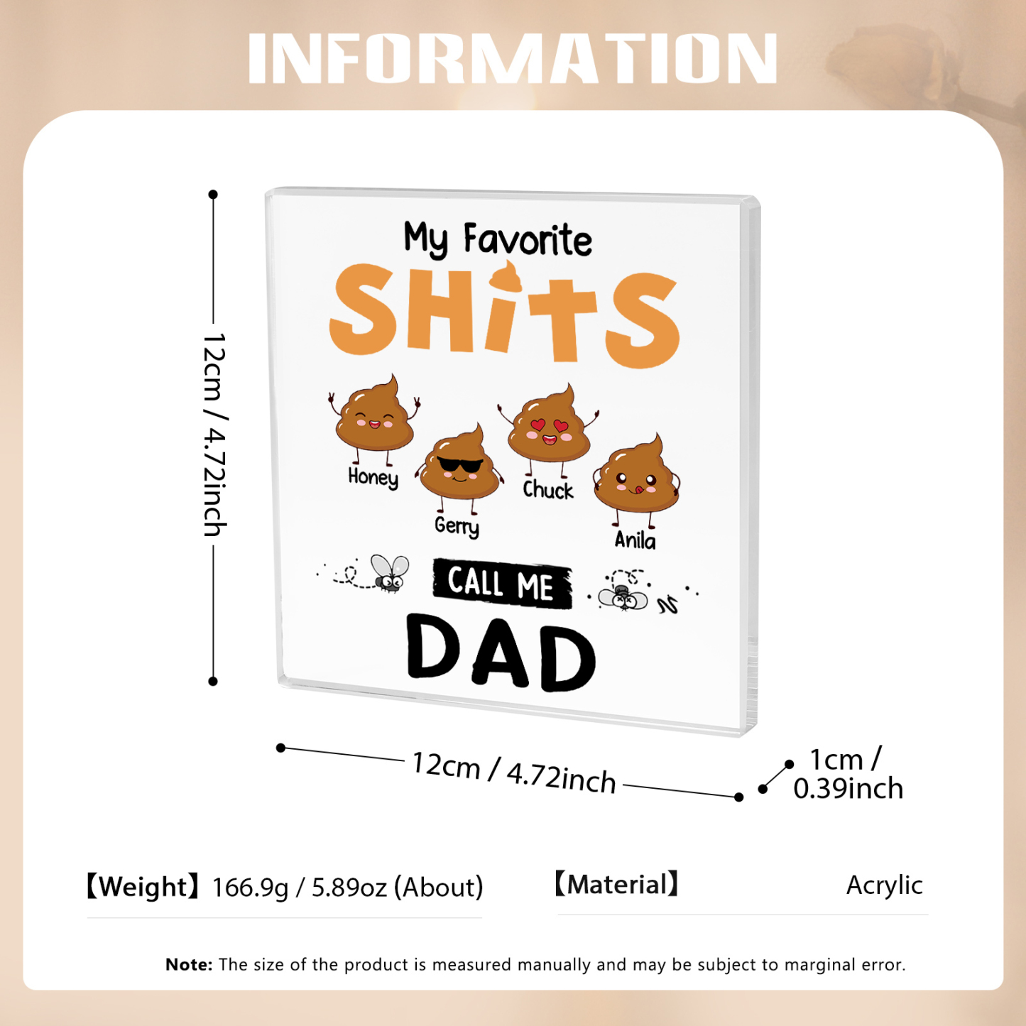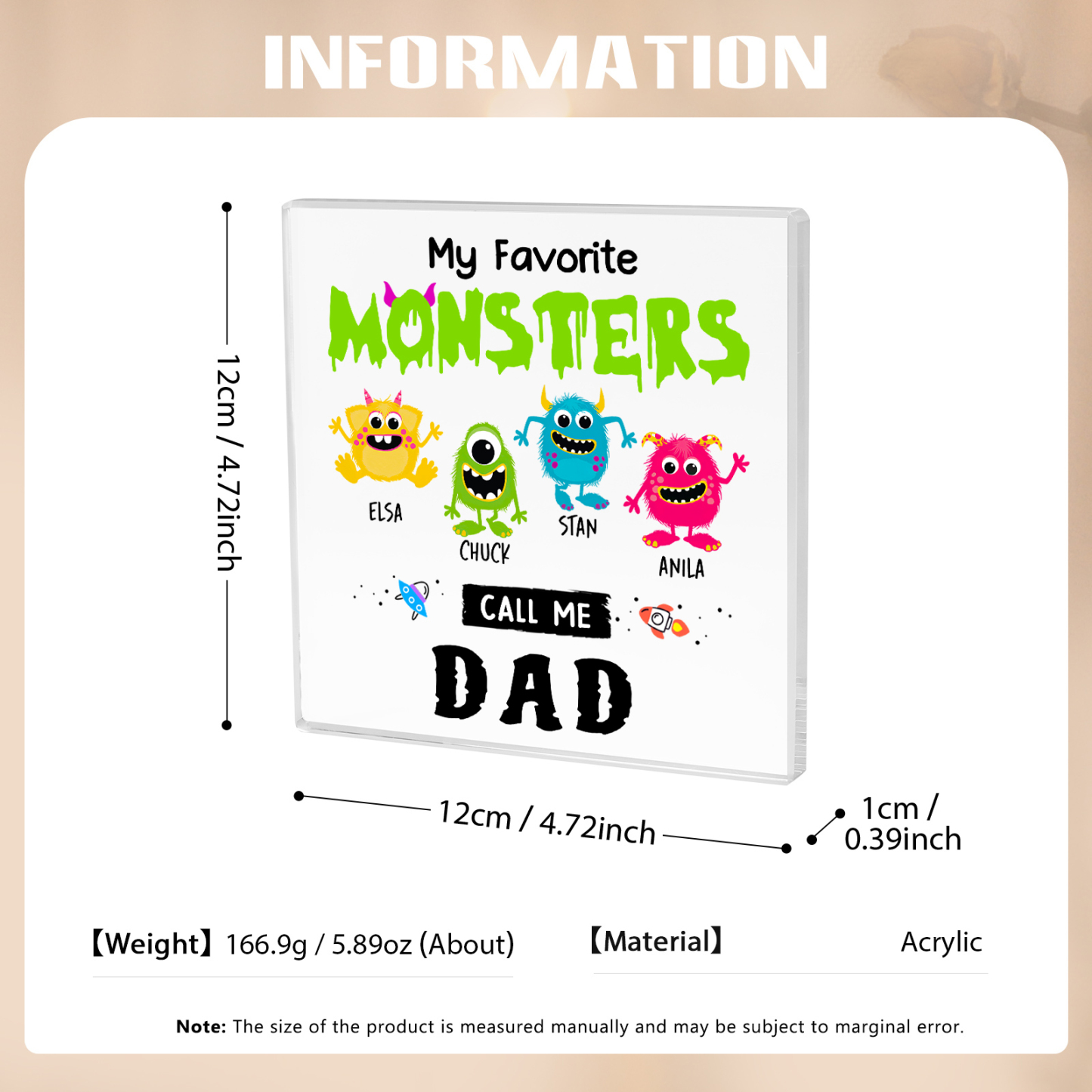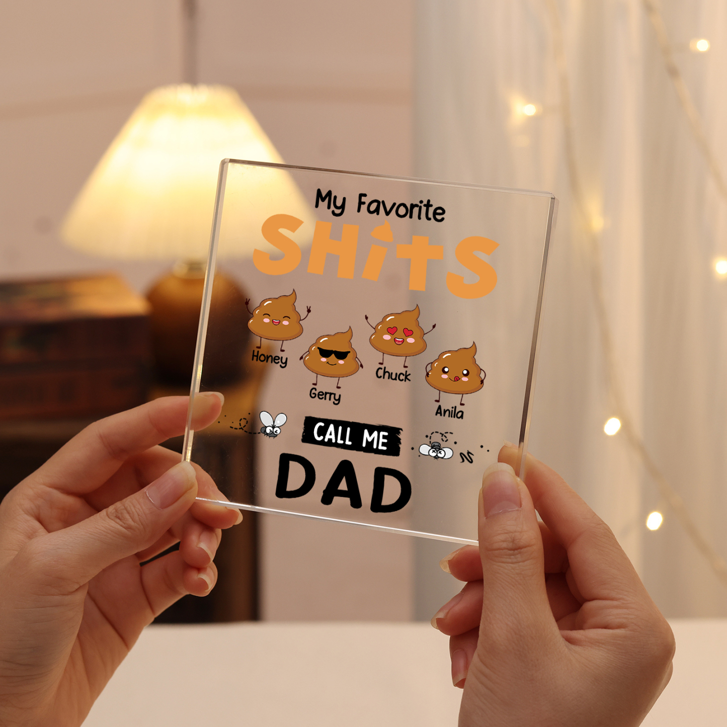 4 Names - Personalized Monster and Shit Style Custom Name Acrylic Ornament Father's Day Gift for Dad