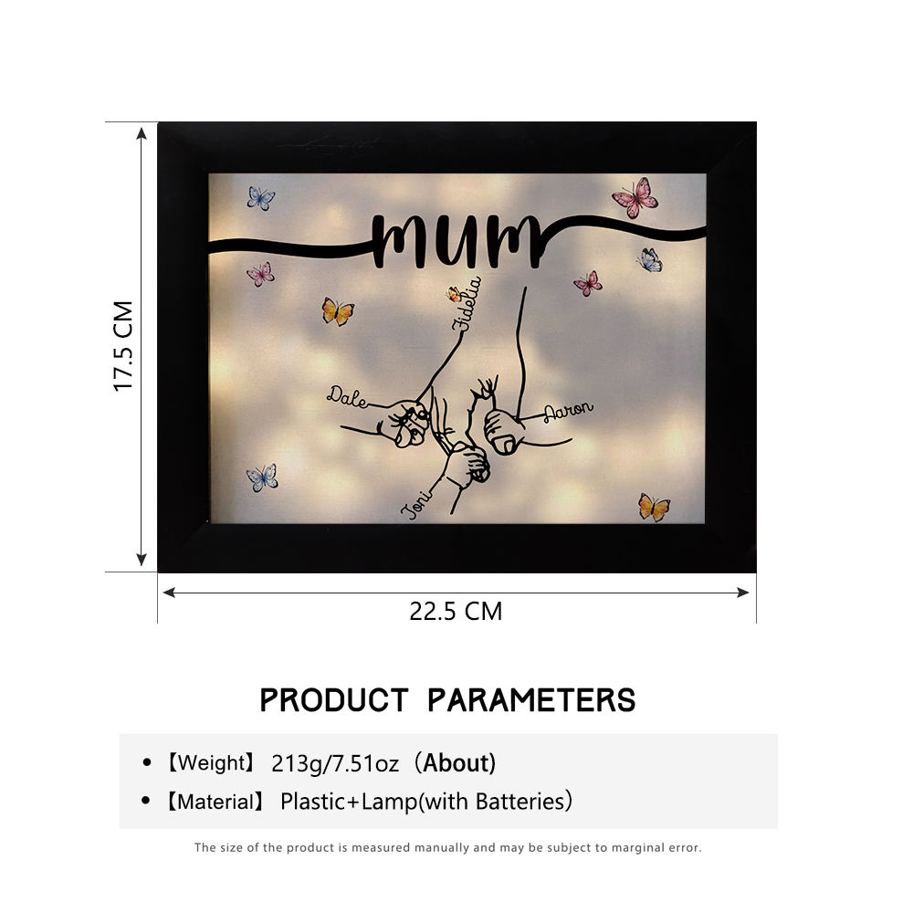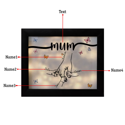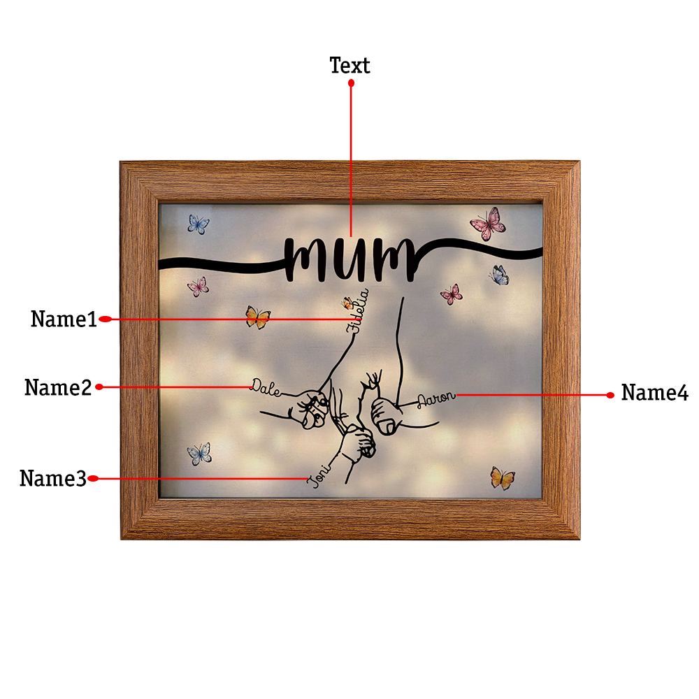 4 Names-Personalized Mum Family Hooking Hands Frame Custom Text LED Night Light Gift For Mum