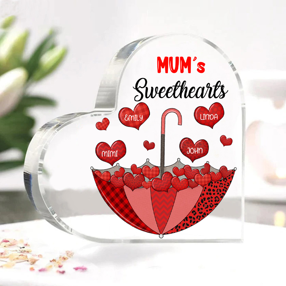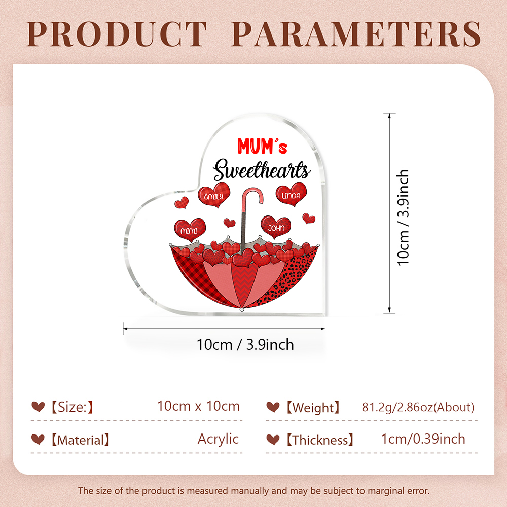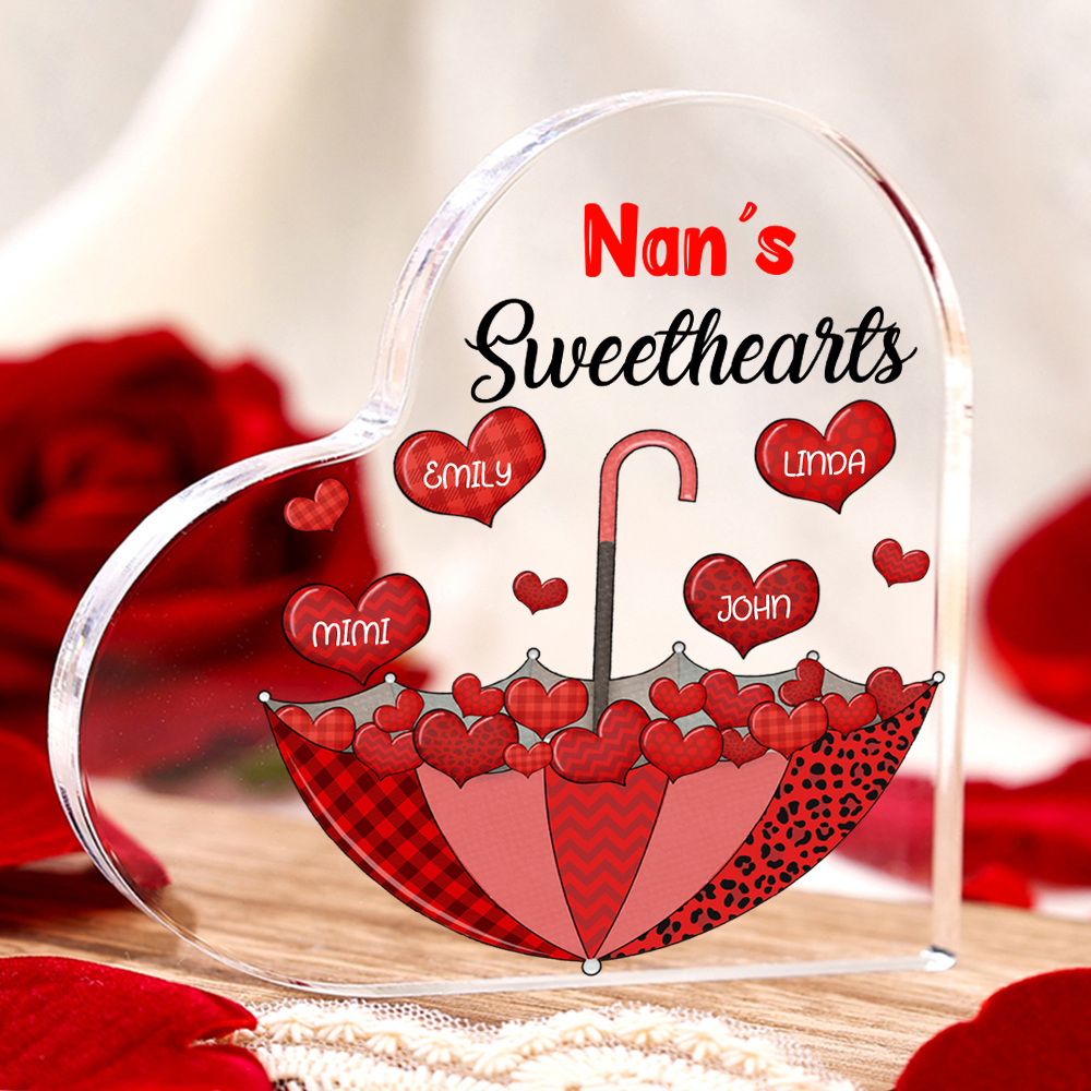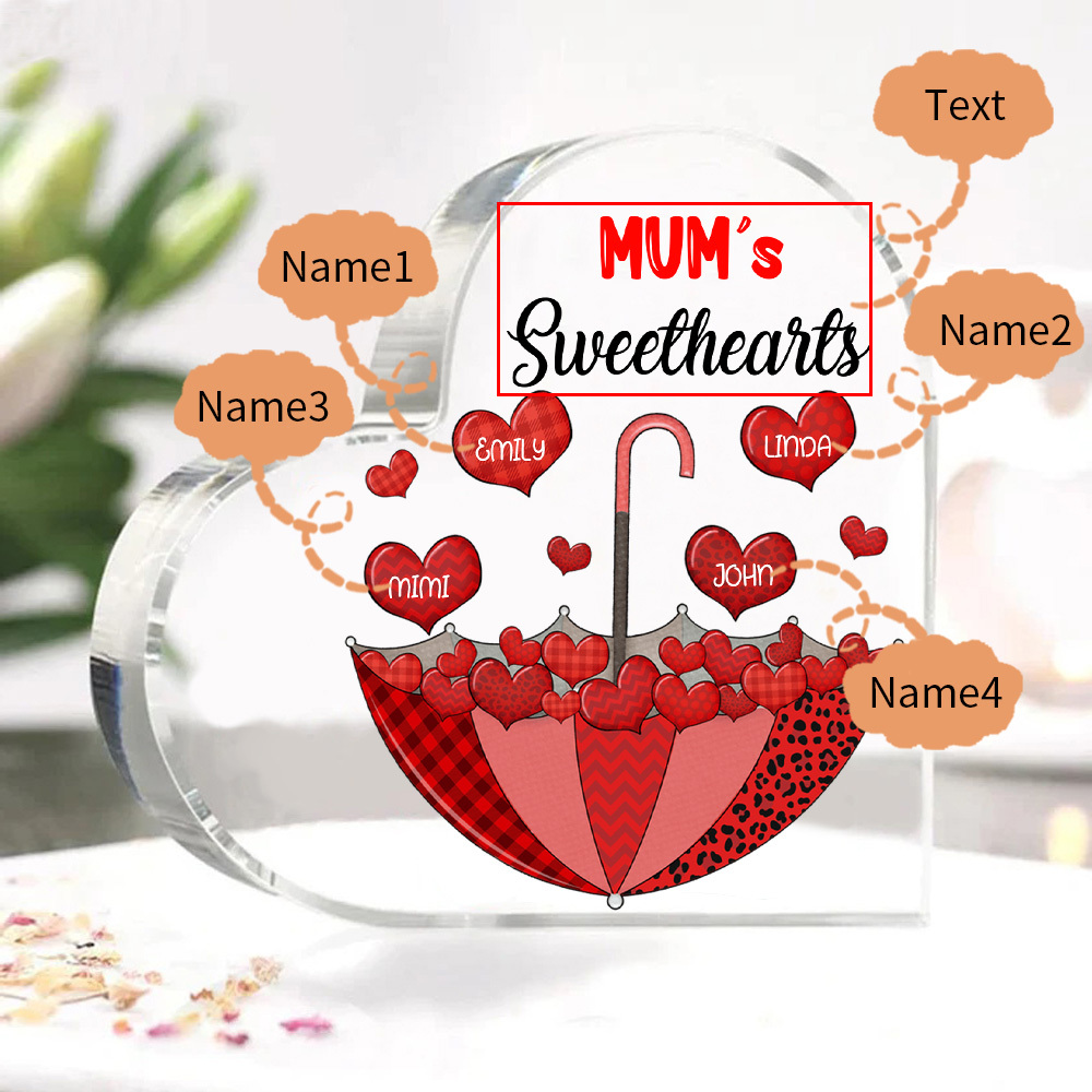 4 Names-Personalized Mum Heart Umbrella Acrylic Heart Keepsake Custom Text Acrylic Plaque Ornaments Gifts Set With Gift Box for Nan/Mother
