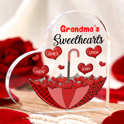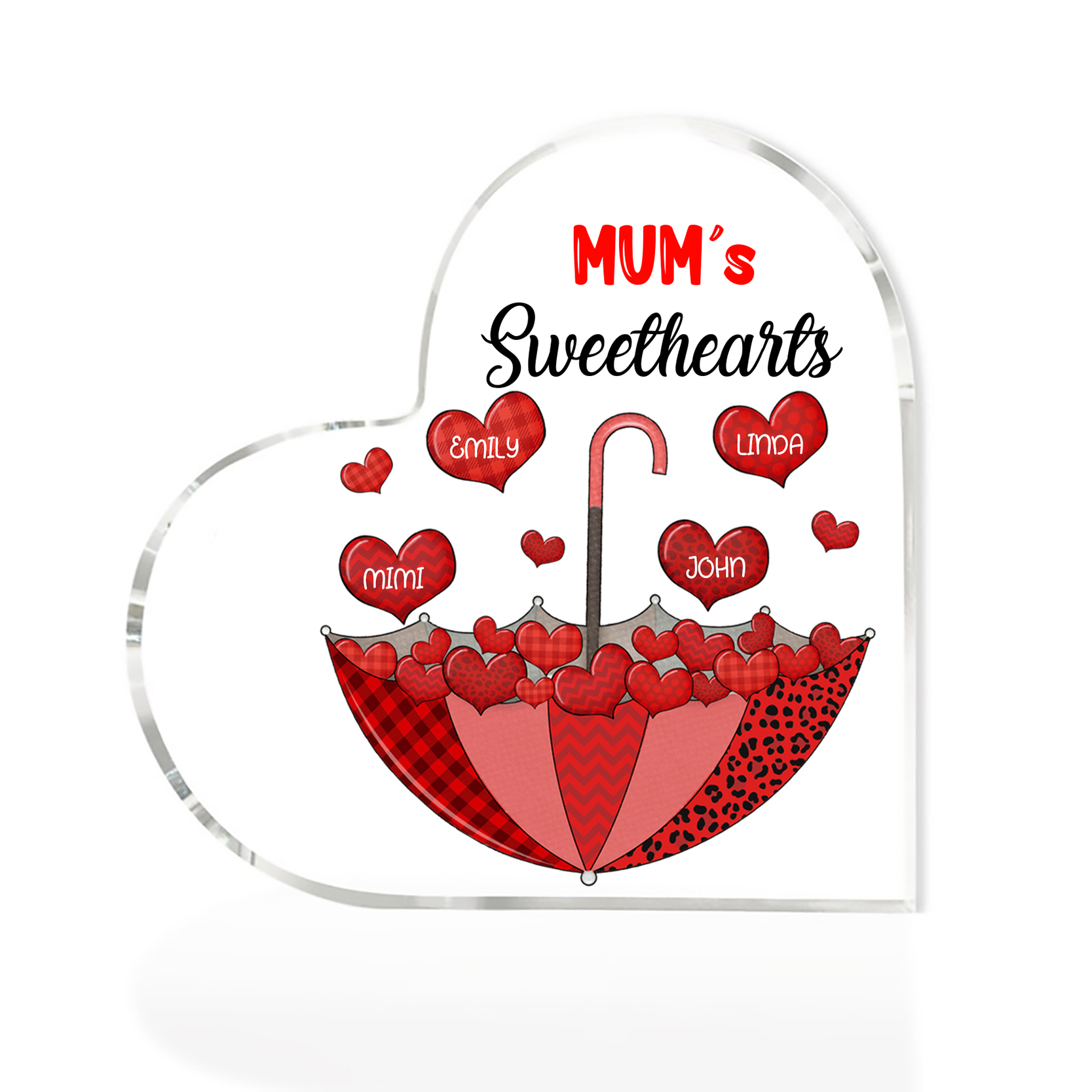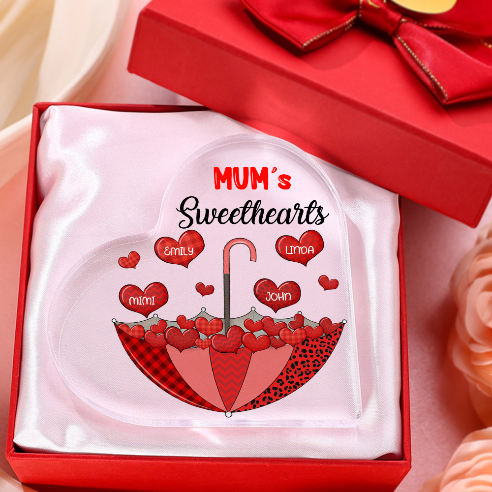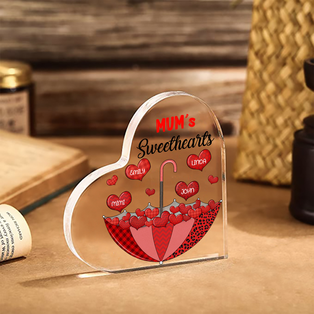 4 Names-Personalized Mum Heart Umbrella Acrylic Heart Keepsake Custom Text Acrylic Plaque Ornaments Gifts Set With Gift Box for Nan/Mother