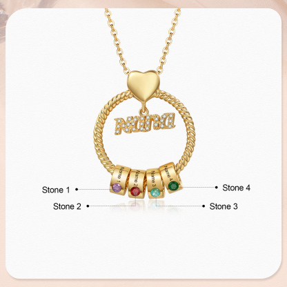 4 Names-Personalized Nana Circle Necklace Set With Rose Flower Gift Box-Custom Women Necklace With 4 Birthstones Pendant Engraved Names Gift For Nana