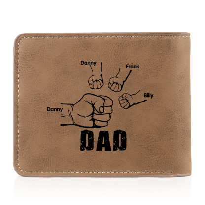 4 Names - Personalized Photo Custom Leather Men's Folding Wallet as a Father's Day Gift for Dad