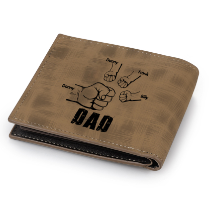 4 Names - Personalized Photo Custom Leather Men's Wallet as a Father's Day Gift for Dad