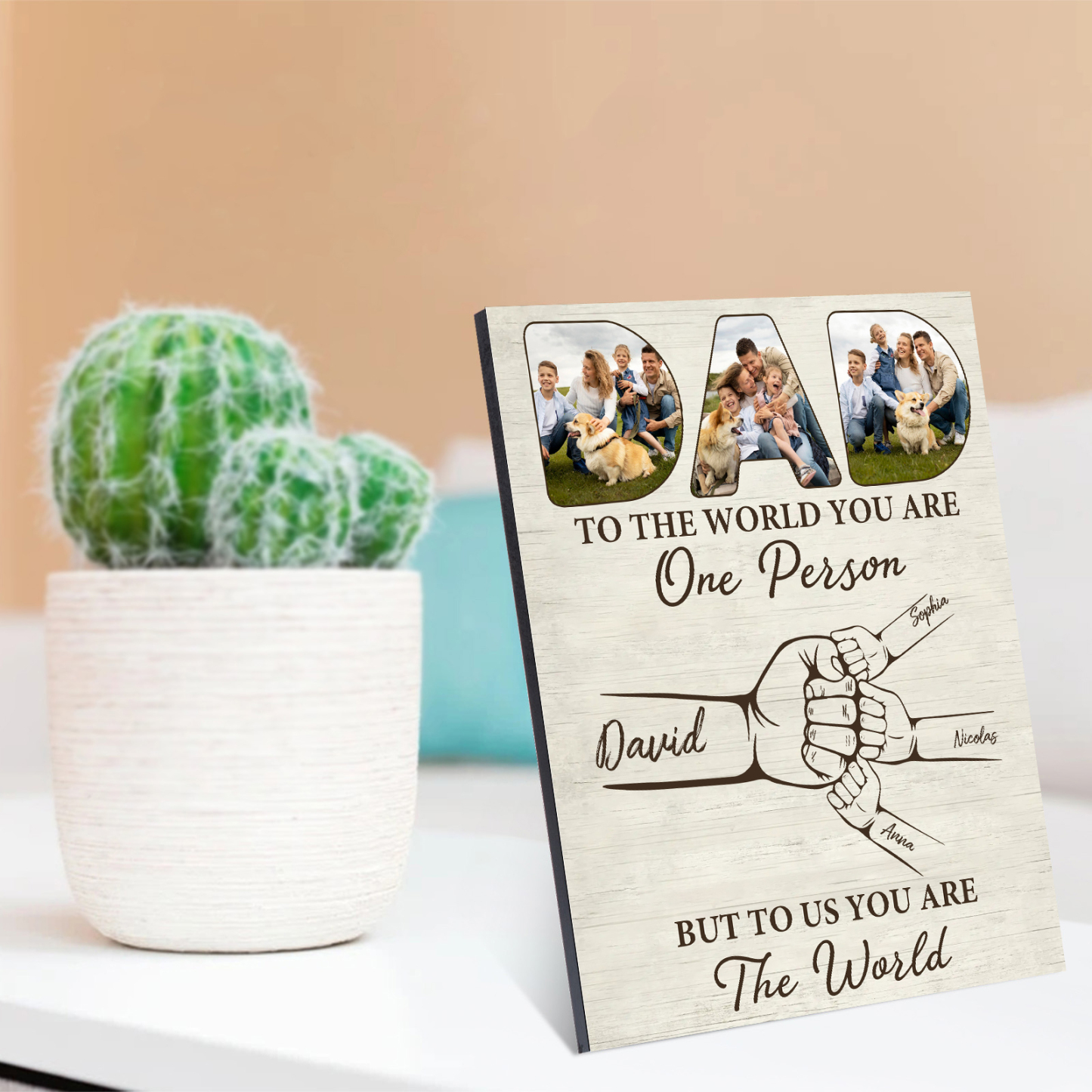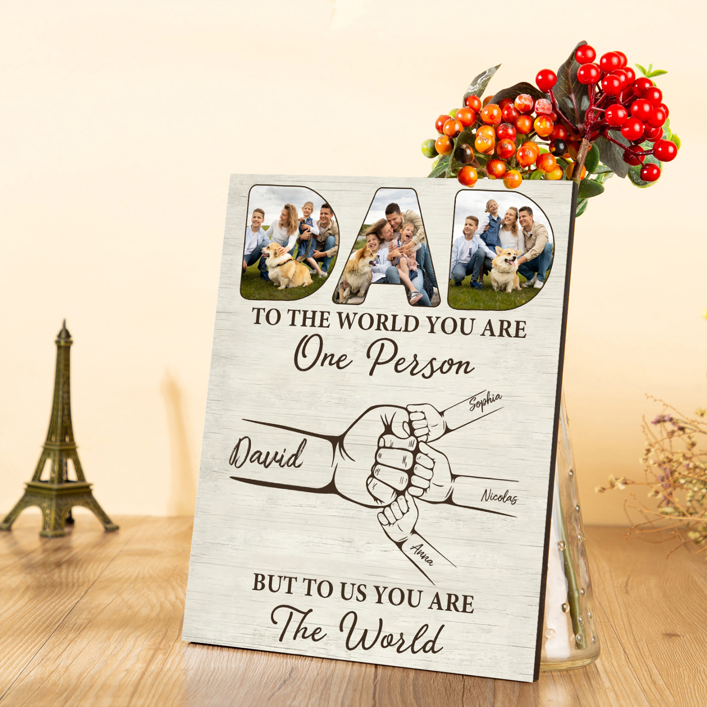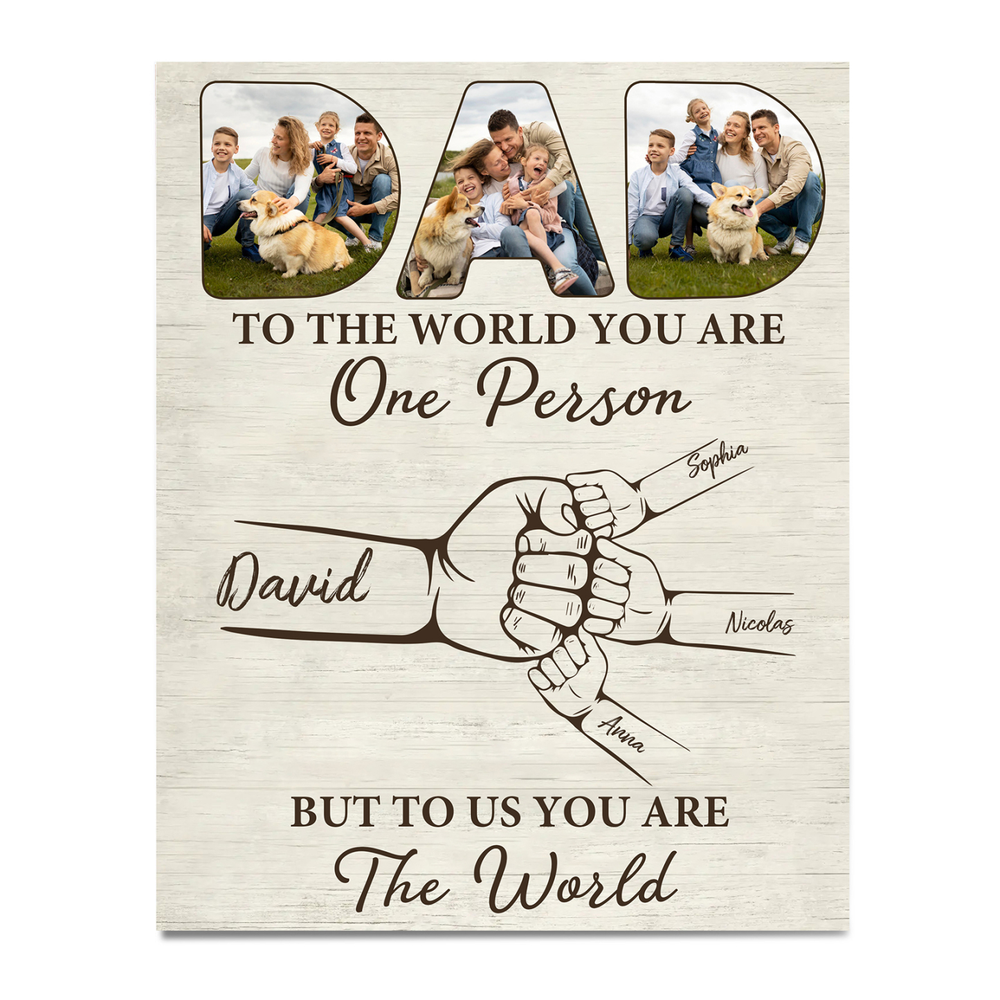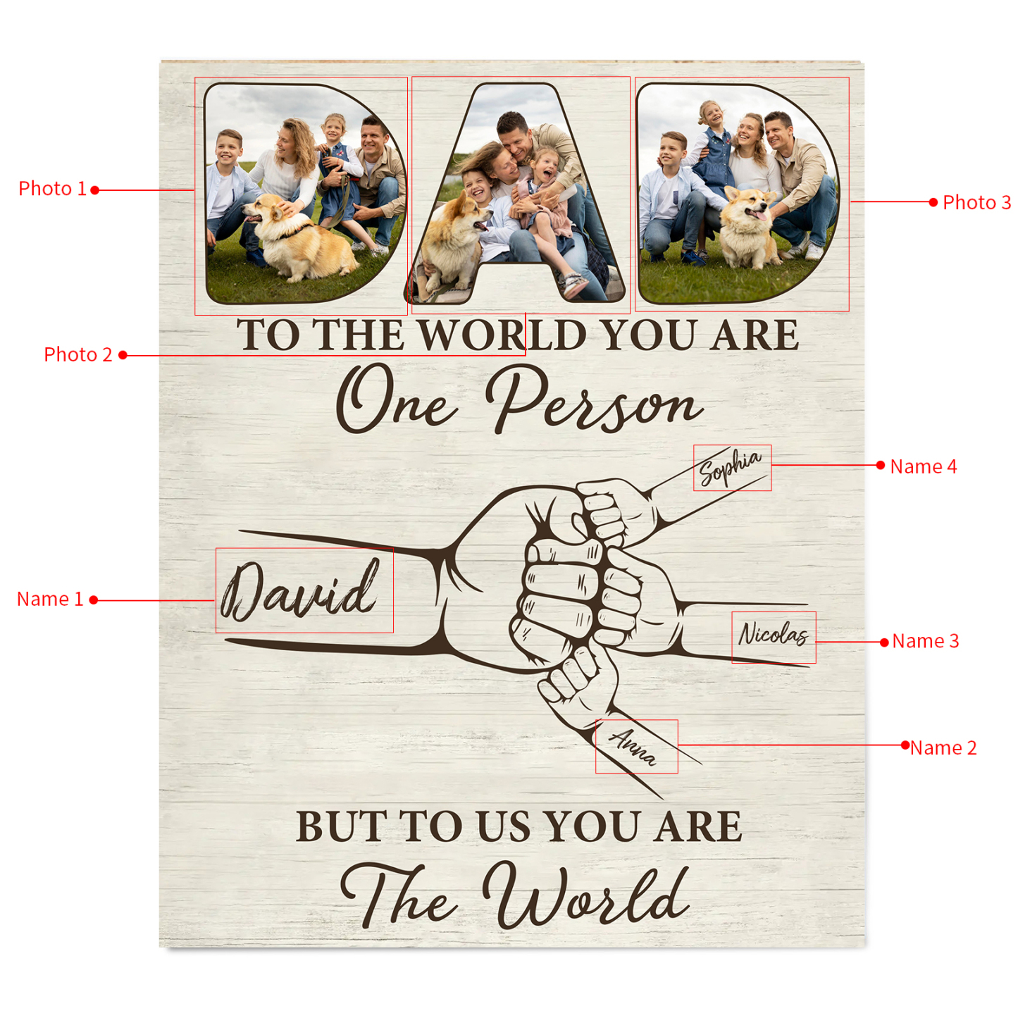 4 Names - Personalized Photos Fist Bump Home Wood Panel Painting Decorations Father's Day Gift for Dad