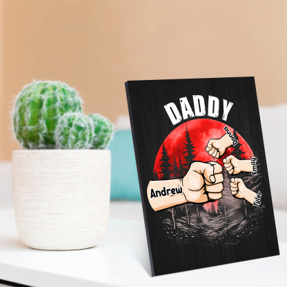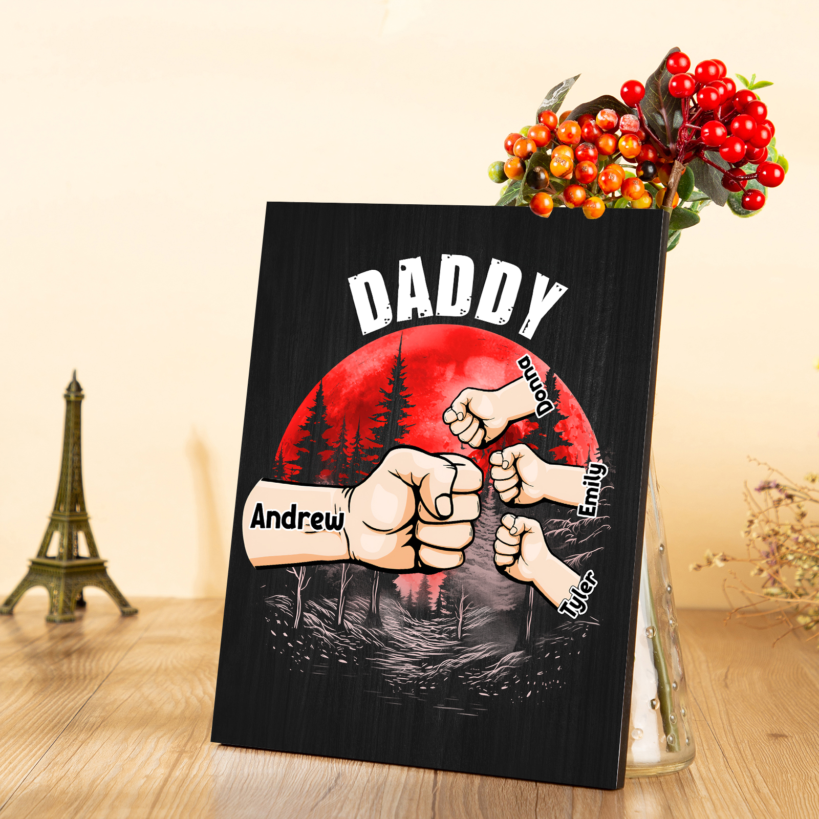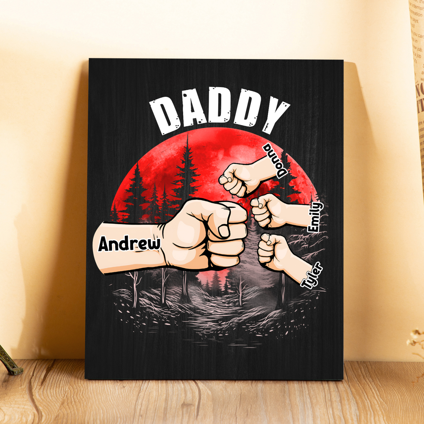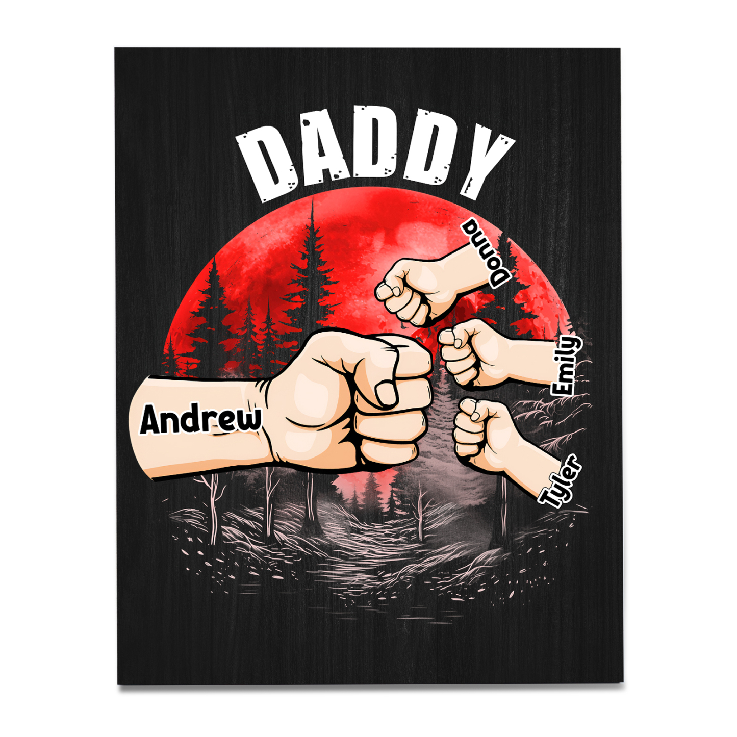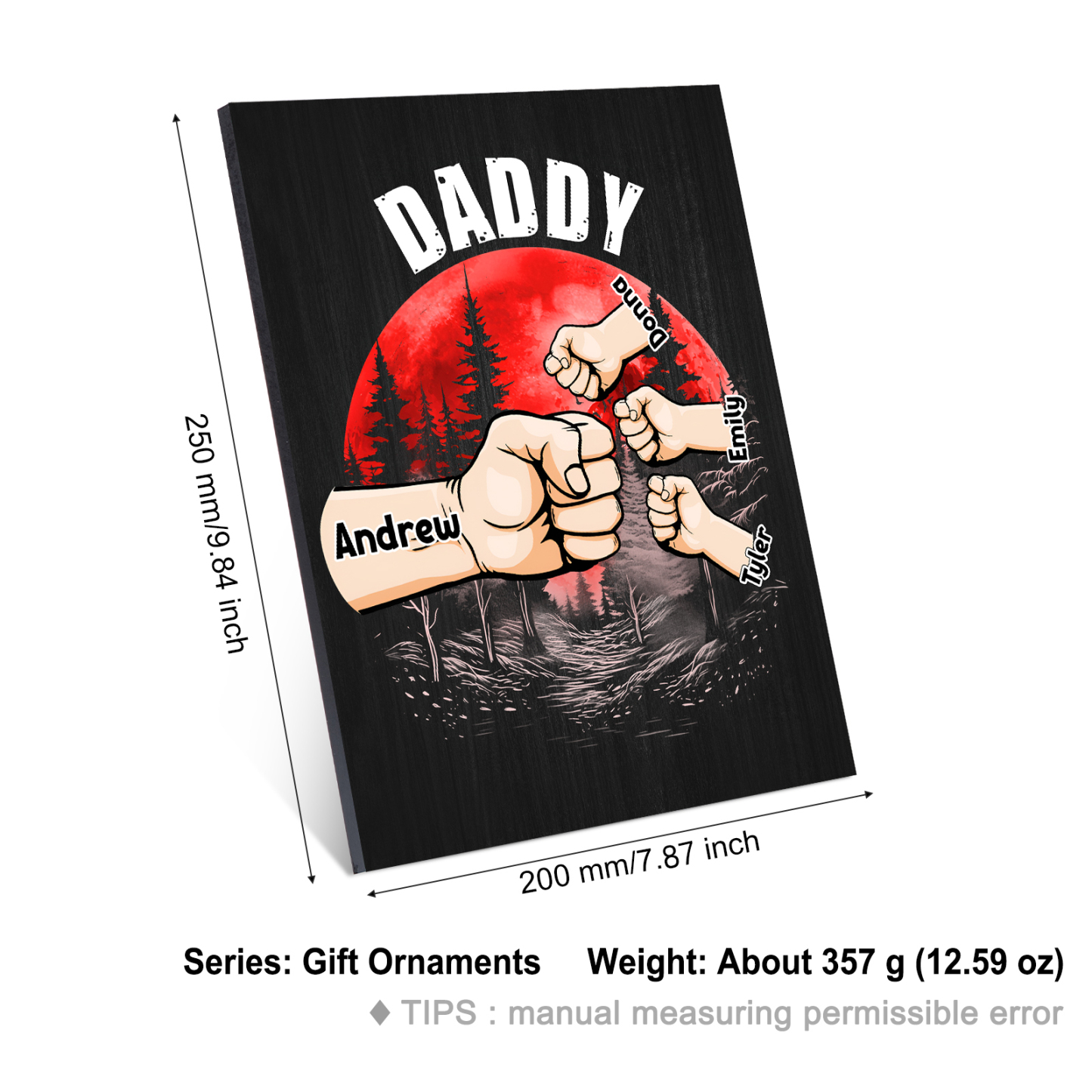 4 Names - Personalized Wooden Ornament Fist Bump Red Forest Style Engraved Name and Text Ornament for Dad