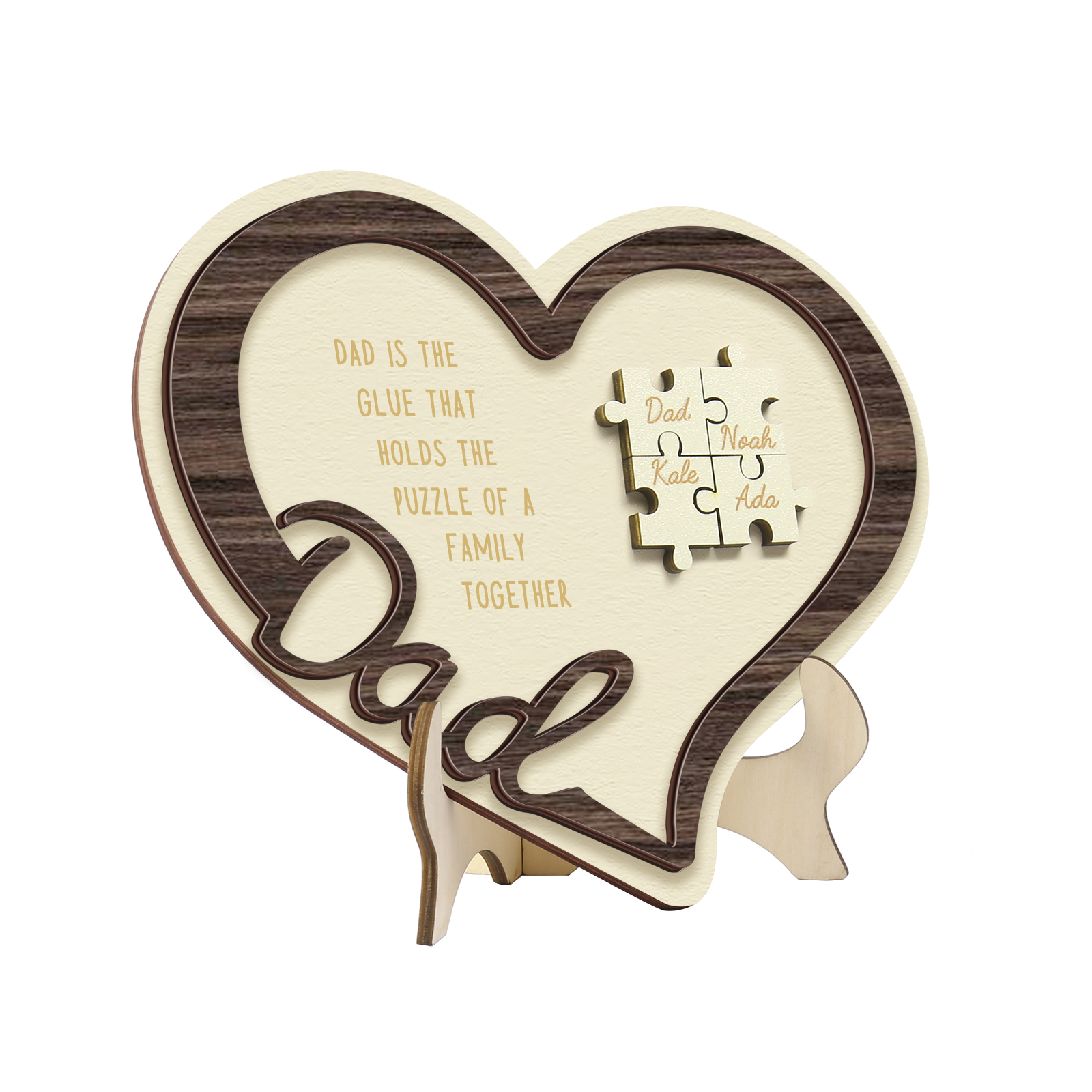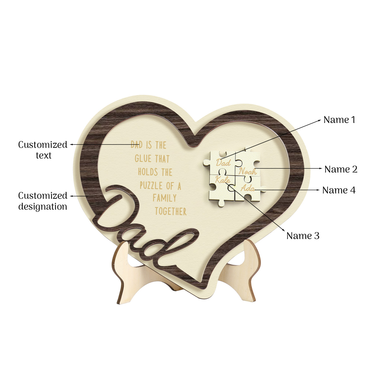 4 Names - Personalized Wooden Ornaments Heart and Puzzle Elements Engraved Text Style Ornaments Home Decor for Dad