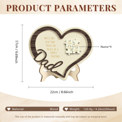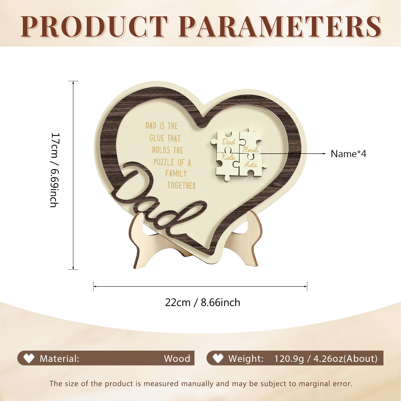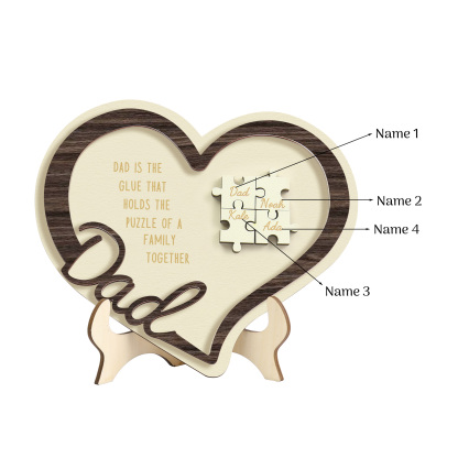 4 Names - Personalized Wooden Ornaments Heart and Puzzle Elements Style Ornaments Home Decor for Dad