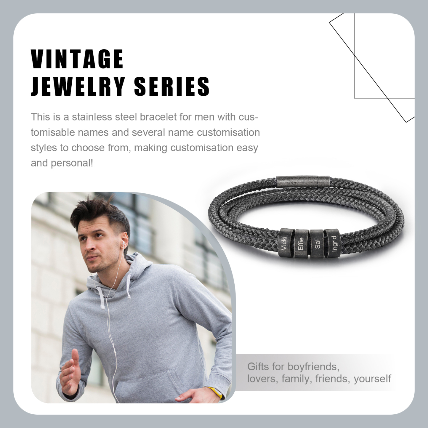 🌟 Elevate your style with this vintage men's bracelet – a distinctive and personalized accessory that allows customization with 2–4 names, adding a truly special touch.
