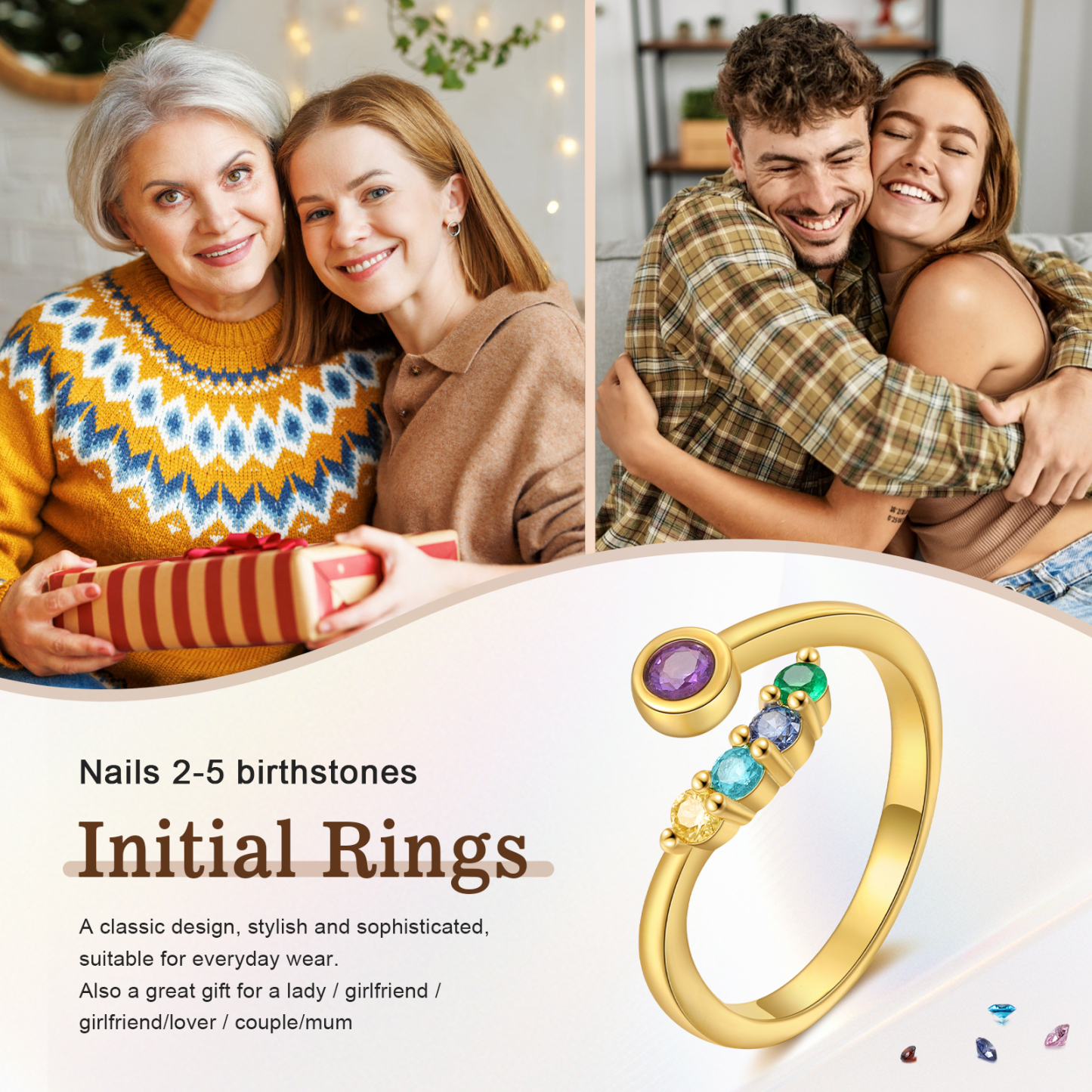 5 Birthstones - Personalized Birthstone Ring, A Customized Gift For Her