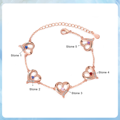 5 Names-Personalized Woman Bracelet With 5 Birthstone Custom Names Bracelet Gift For Women