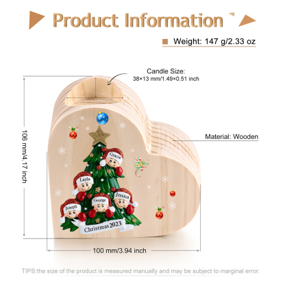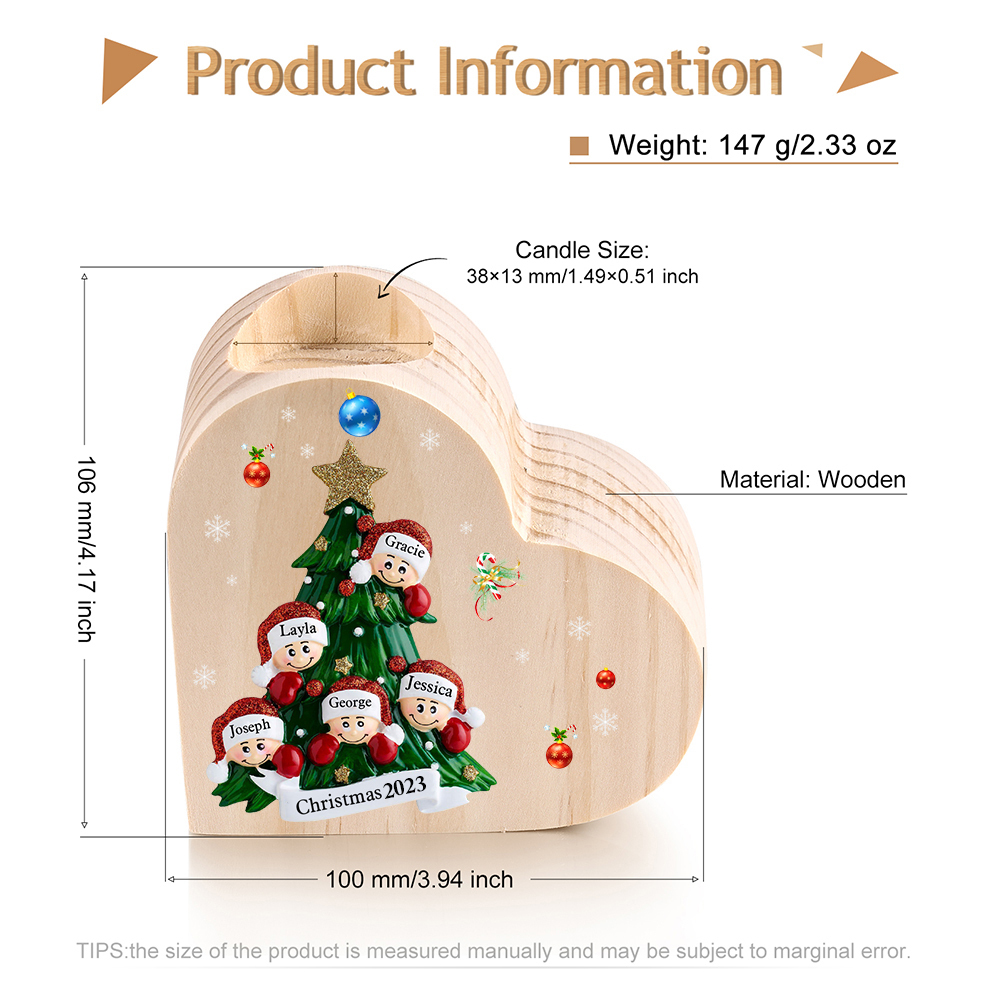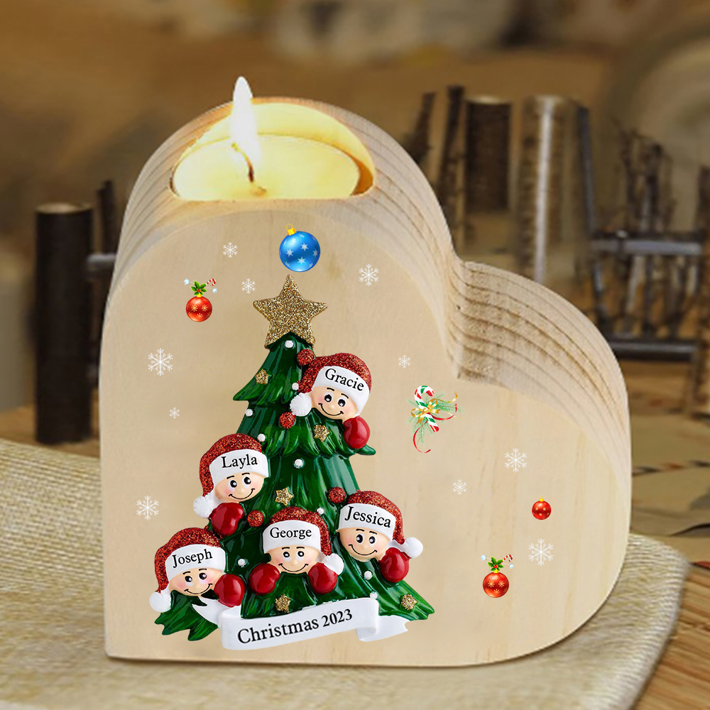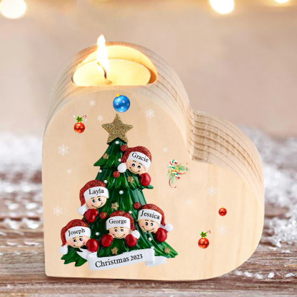 5 Names-Custom Christmas Tree Wooden Candlestick-Personalized Names Heart Candle Holder Christmas Gift for Family