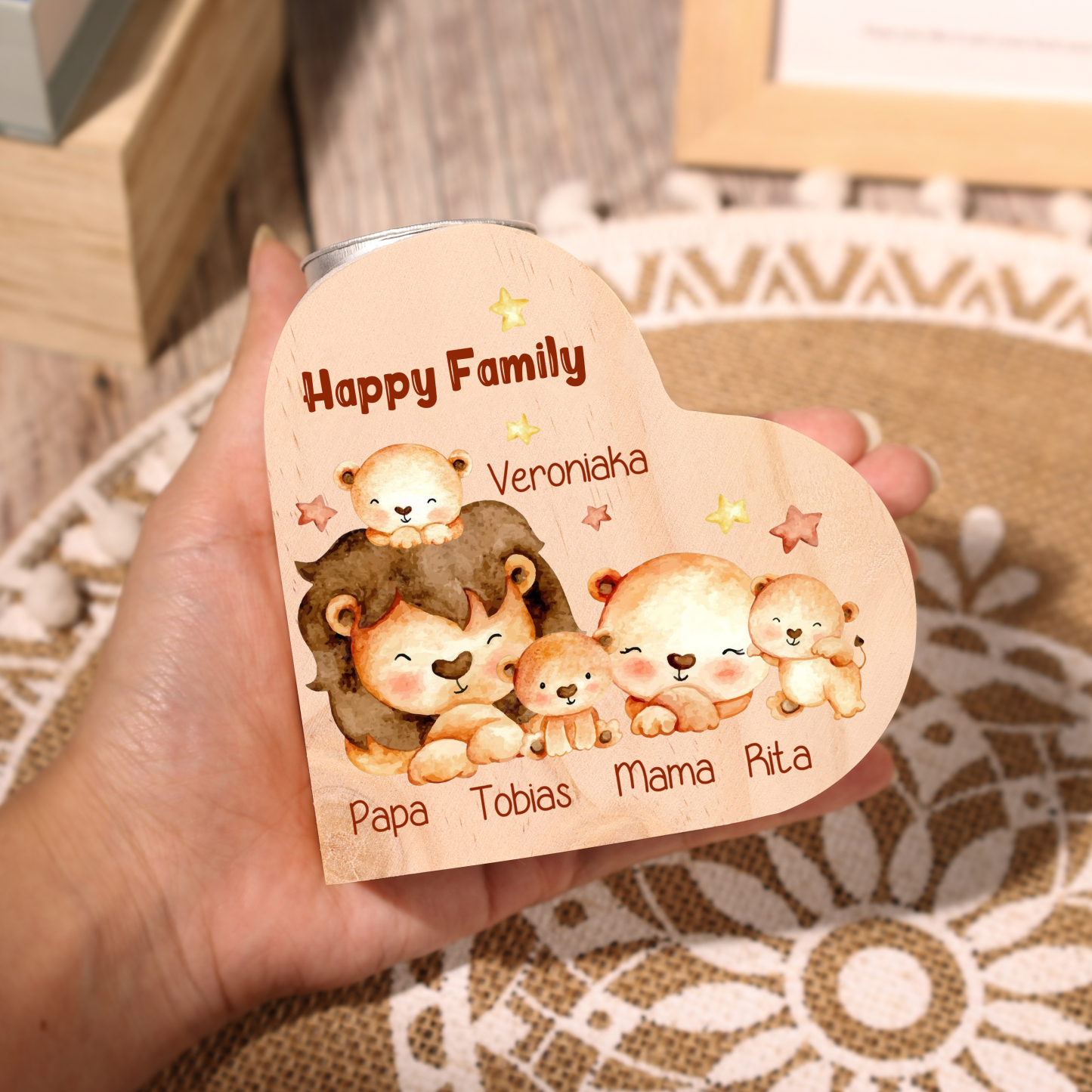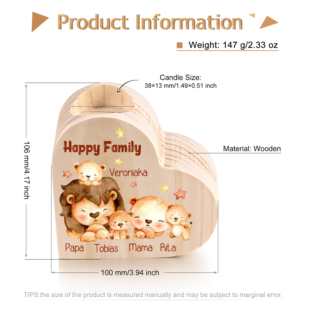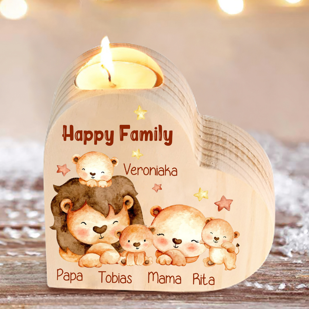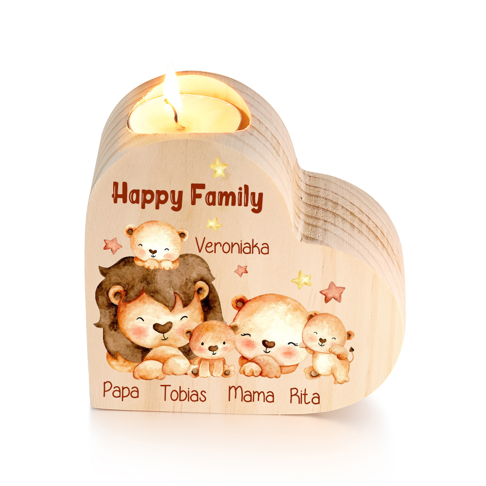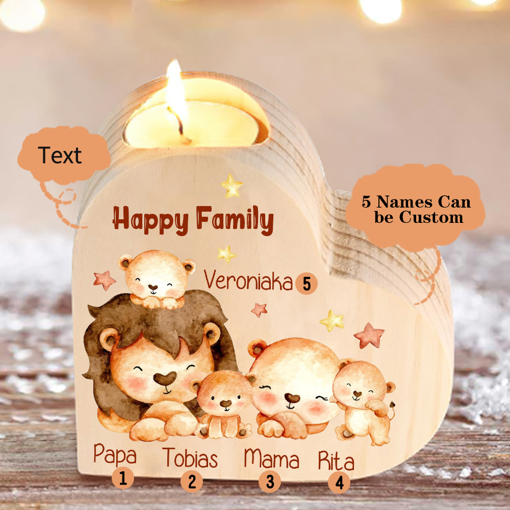 5 Names-Custom Family Lions Wooden Candlestick-Personalized Names Heart Candle Holder Christmas Gift for Family