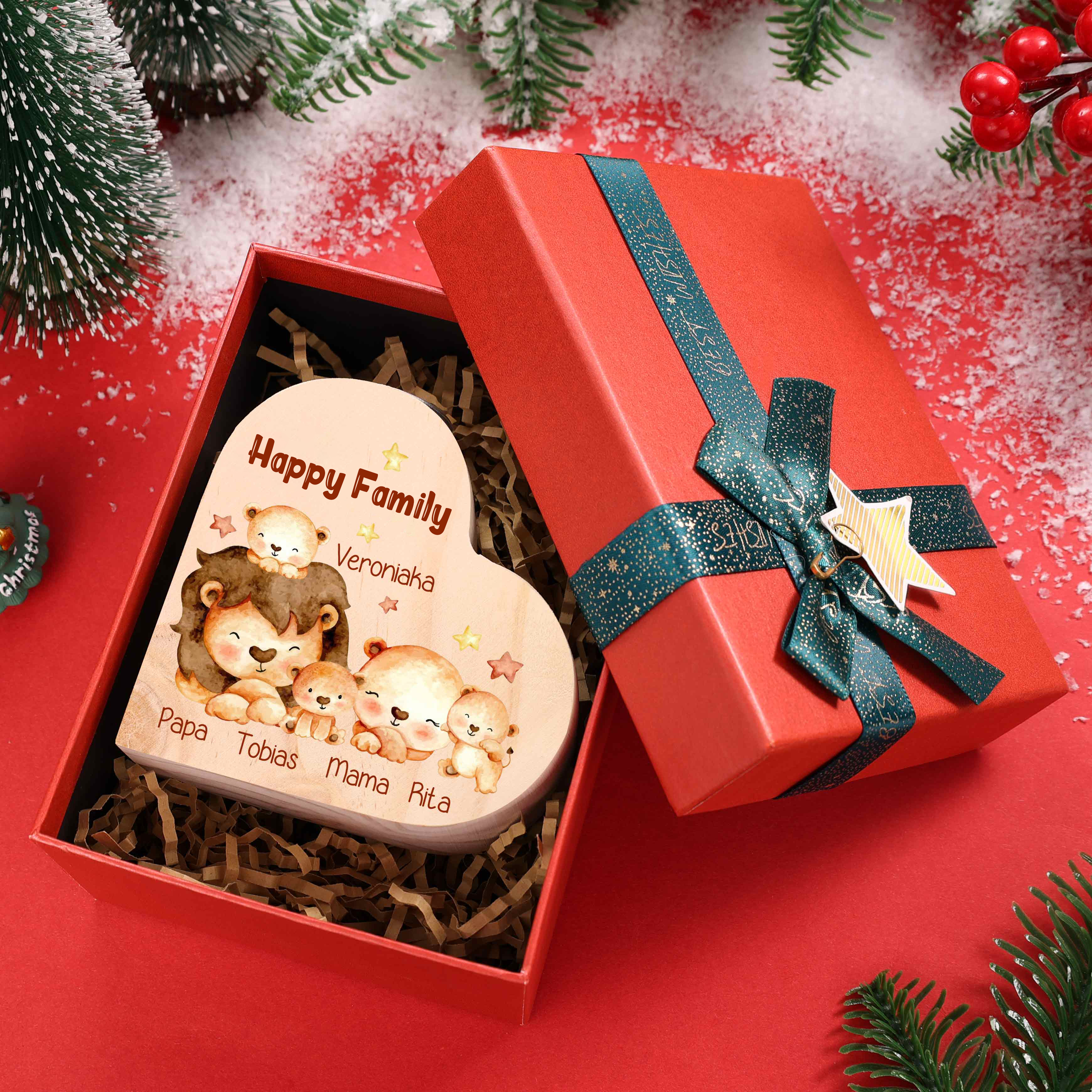 🎄 This custom heart-shaped FAMILY candle holder is the perfect gift for your family! With its unique heart-shaped design and the option to customize 3-7 names, it adds warmth and a special touch to your household. On Christmas night, light the candles and share the love and joy of your family.