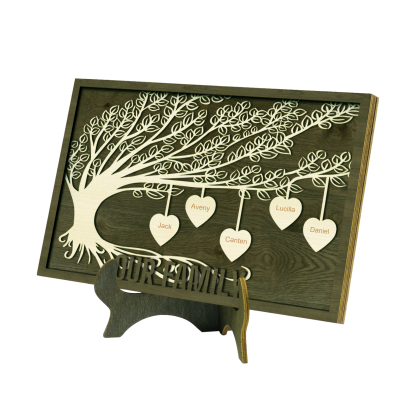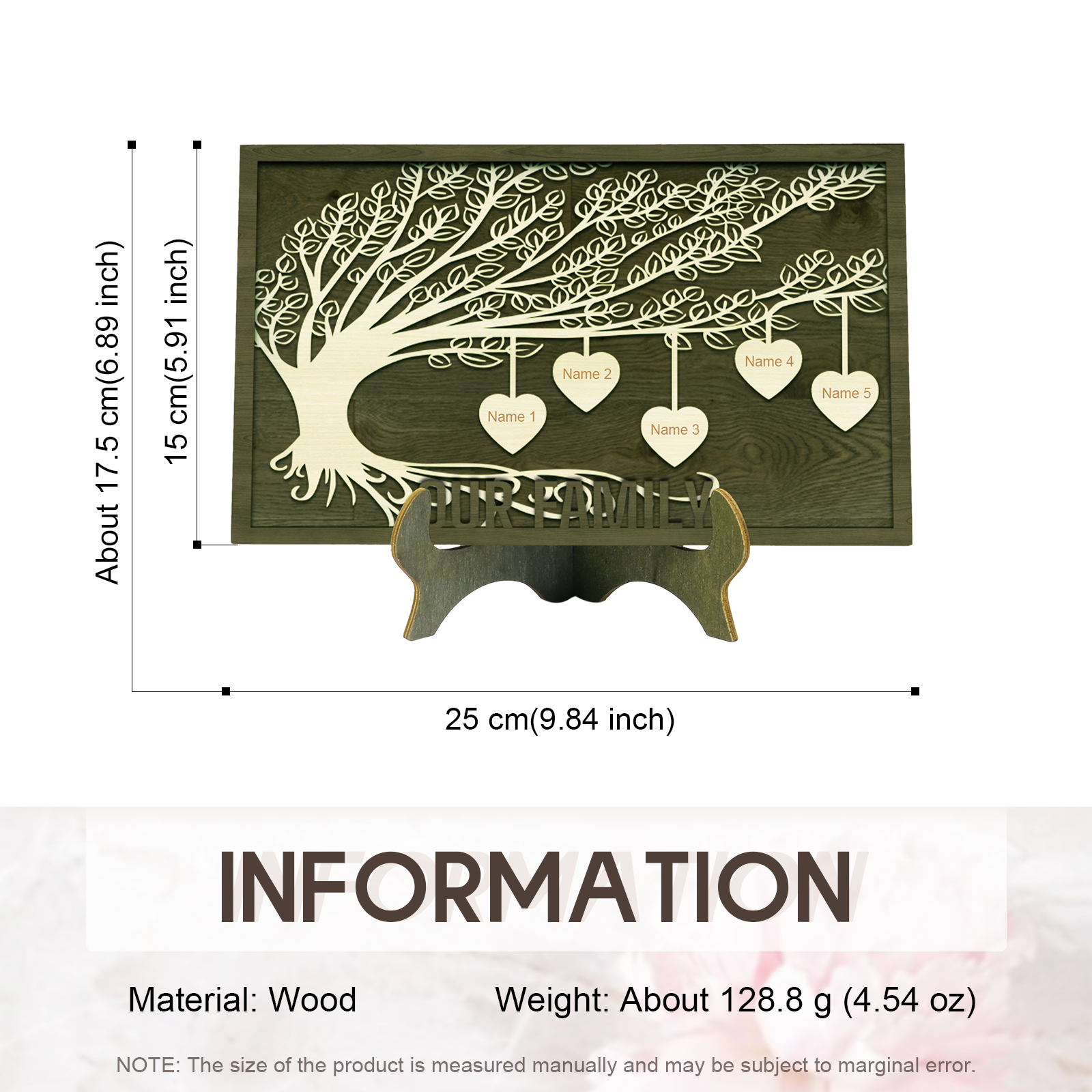 5 Names -Customized Tree Type Wooden Ornaments Decorations Text Our Family