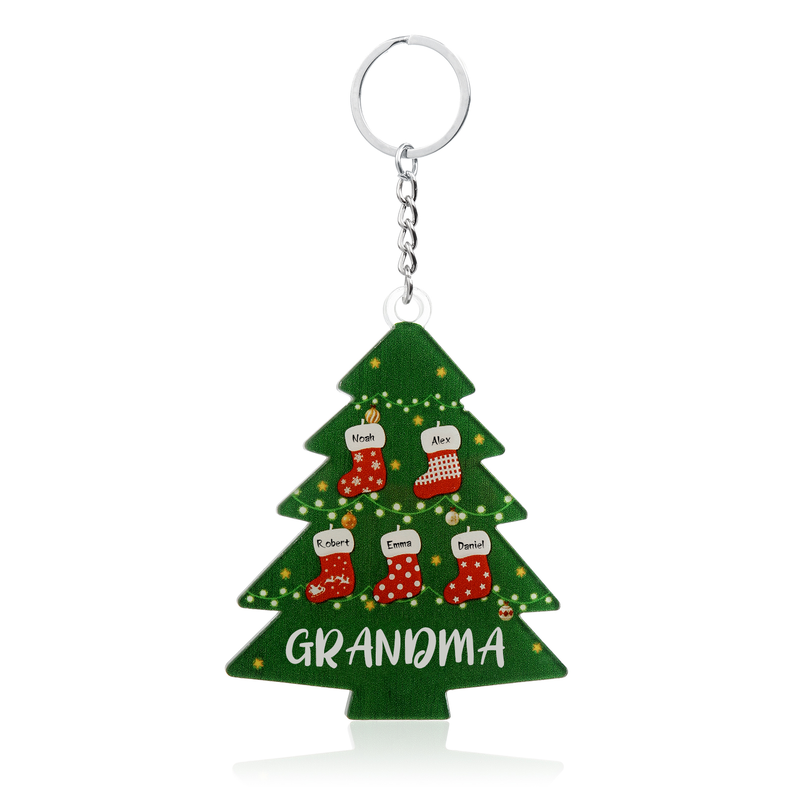 5 Names-Personalized Acrylic Family Christmas Tree Keychain-Custom Special Names And Text Keychain Gift For Family
