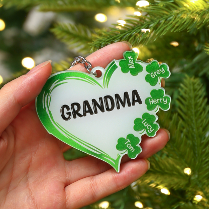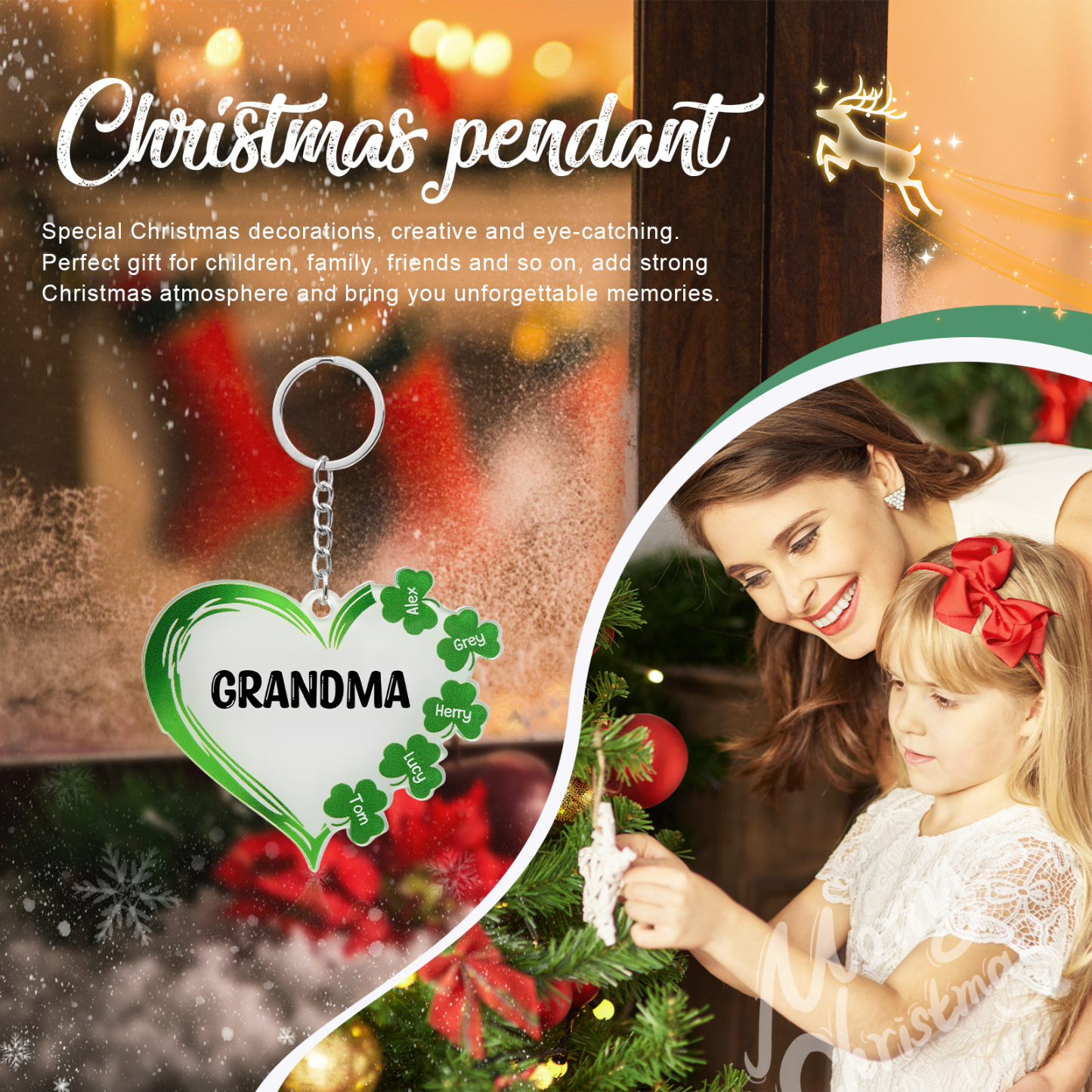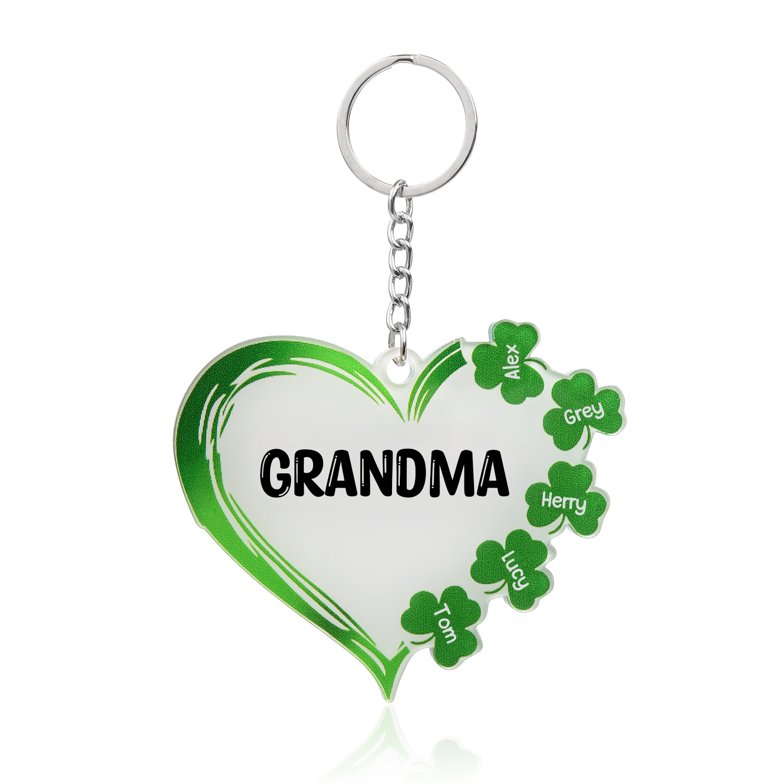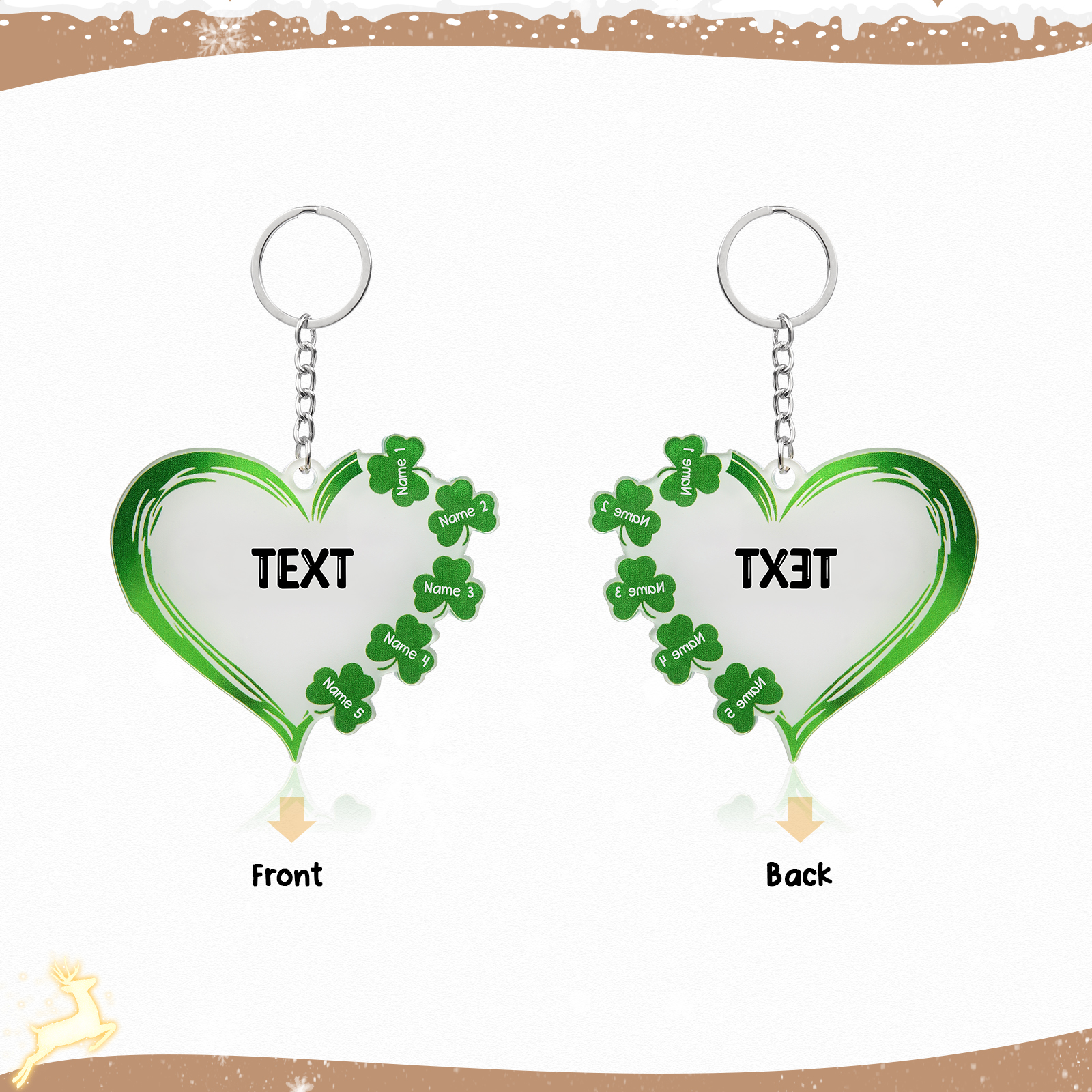 5 Names-Personalized Acrylic Family Hearts And Four-leaf Clover Keychain-Custom Special Names And Text Keychain Gift For Family
