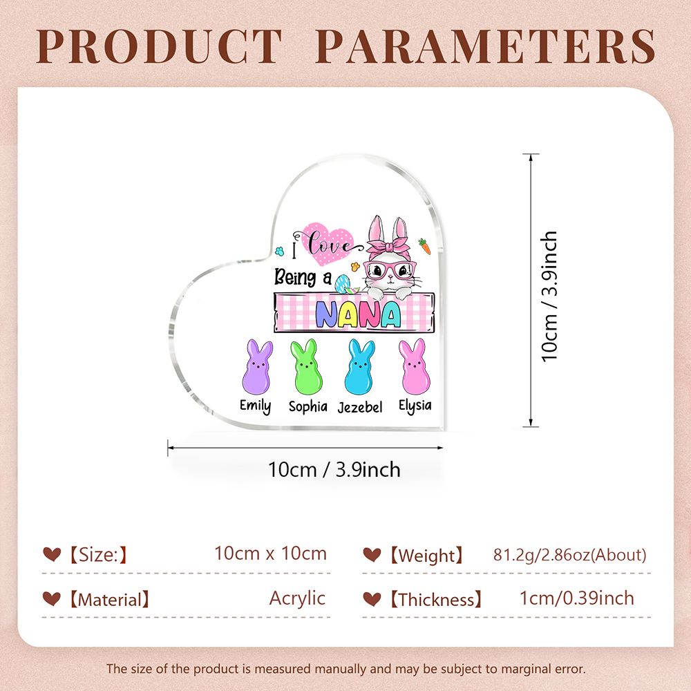 5 Names-Personalized Acrylic Heart Keepsake Custom Names Bunny Ornaments Gifts for Grandma/Mother