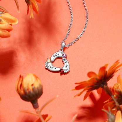 Mums love anything that celebrates their children, not to mention this lovely Baby Feet Necklace of top quality, meant to last a lifetime. Celebrate the miracle of birth with this commemorative necklace. Engrave up to Six baby feet charms with the names or dates of the children and birthstone on each pendant.