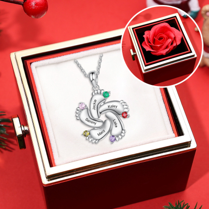 5 Names-Personalized Baby Foot Necklace Set With Rose Box-Custom Women Necklace With 5 Birthstones Engraved Names Gift For Mother/Nan/Her