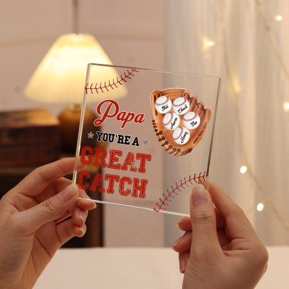 5 Names - Personalized Baseball Acrylic Keepsake Customized Name and Text Acrylic Plaque Ornament Father's Day Gift for Dad