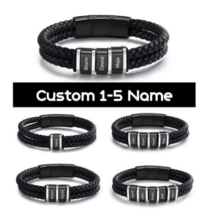 5 Names-Personalized Bead Bracelet Custom Men's Bracelet Engraved Name Personalized Gift Set With Gift Box for Him