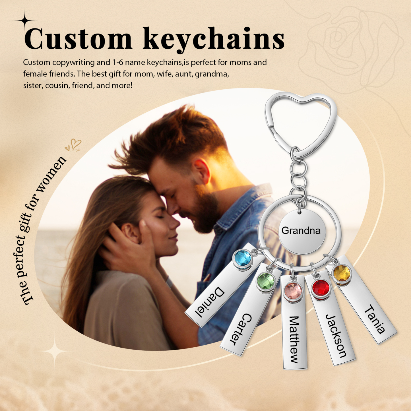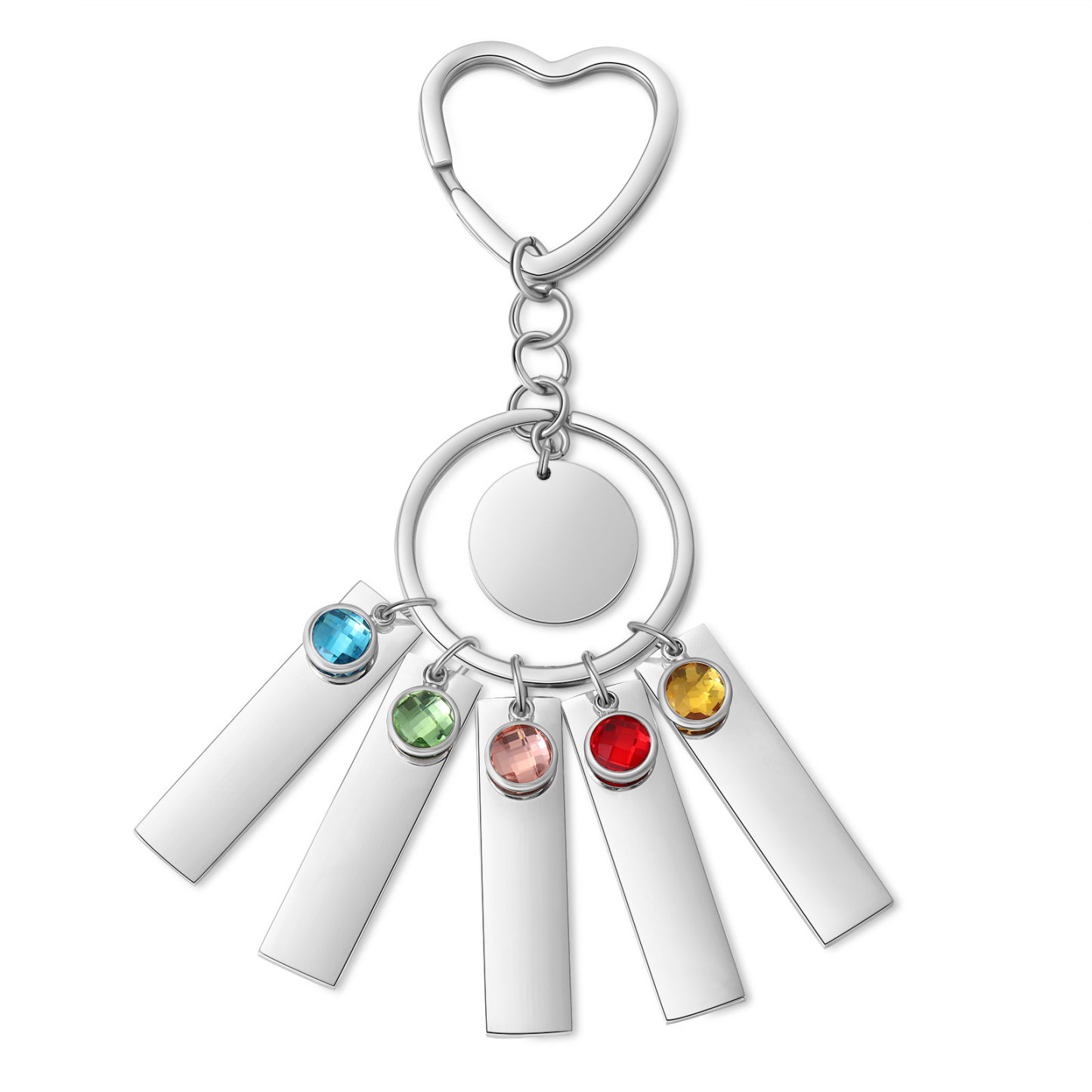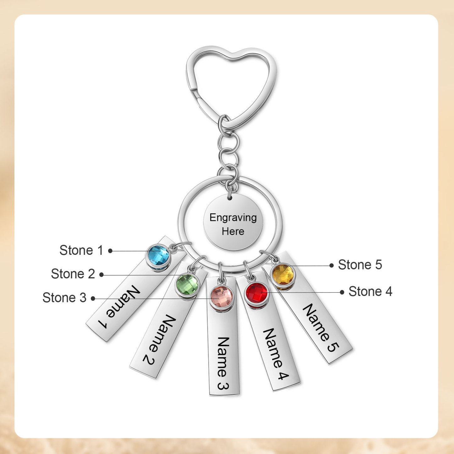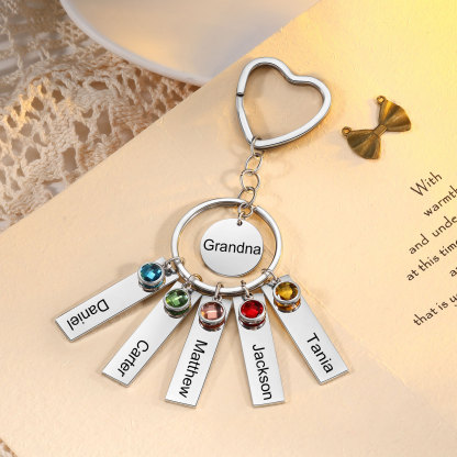5 Names - Personalized Birthstone Love Pendant Design Keychain Hook Engraving Special Gift for Mom