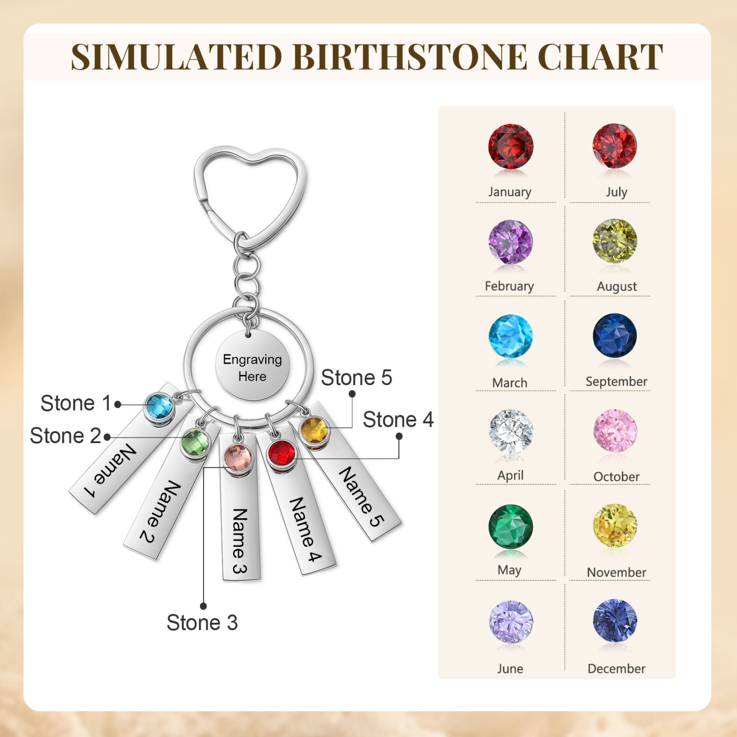 🔥Customize your own unique keychain with personalized names, birthstone accents, and special letters. Choose a birthstone that holds significance.